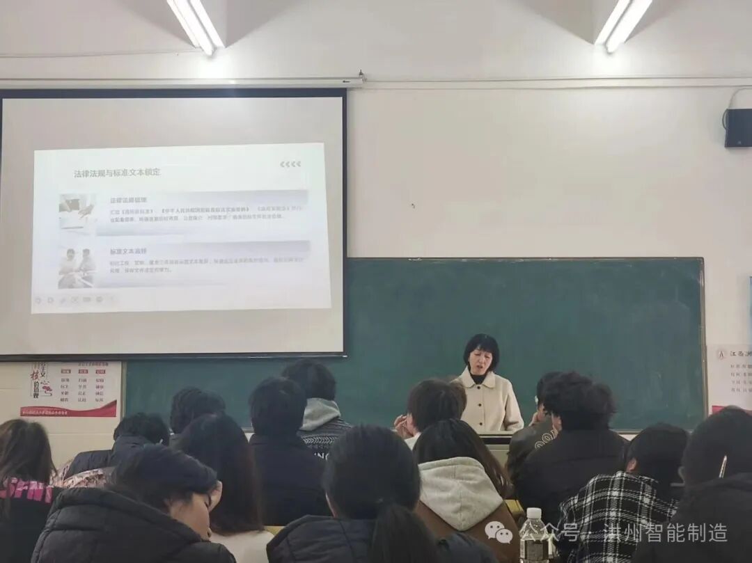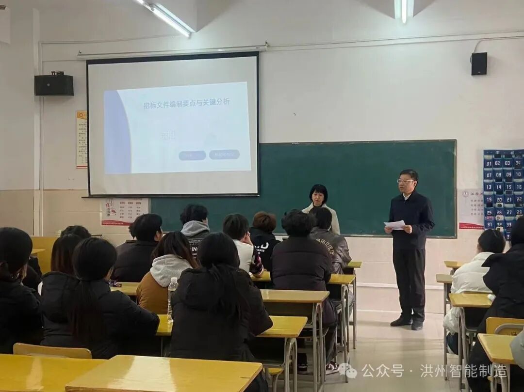 2025 年 12 月 5 日,智能制造产业学院迎来一场聚焦《招标文件的编制要点与分析》的重磅专题授课。特邀高级工程师丁玲老师亲临课堂,以 30 余年行业沉淀的实战经验为基础,用理论结合产业实践的授课方式,为同学们拆解招投标领域的核心逻辑与实操技巧,助力未来智能制造人才夯实商务实务能力。