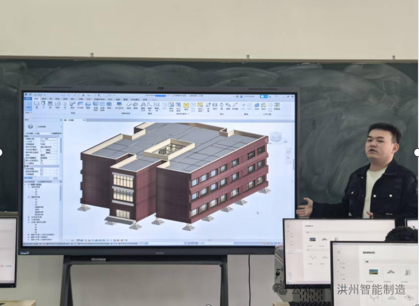 本次公开课由青年教师曹传杰主讲,聚焦《BIM概论与三维建模》中“Revit房间参数创建及可视化”主题。课堂上,曹老师以“从看不见到看得见”为切入点,通过对比无参数模型与彩色可视化模型,引出“参数+可视化”的核心逻辑。随后结合实训楼平面图案例,详细讲解房间参数设置、颜色方案配置等关键知识点,演示面积自动计算、颜色填充图例创建及图像导出的实操流程。任务实操环节,学生们分组完成房间参数配置与颜色方案生成,动手实践率达100%,充分展现了良好的实操能力。