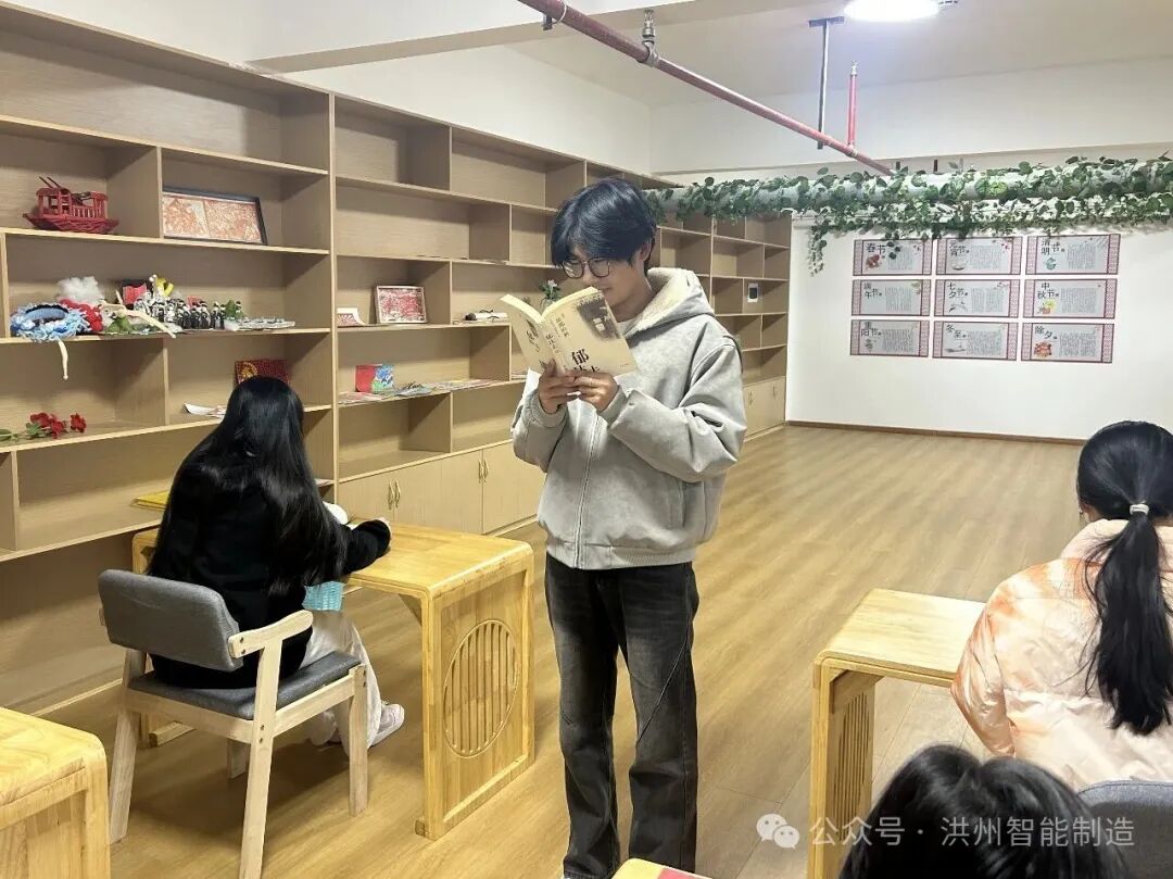 读书分享会上,同学们踊跃发言,各抒己见。有同学分享郁达夫《故都的秋》,畅谈文中北平秋日的清、静、悲凉,以及字里行间蕴含的细腻乡愁,引发了在场同学对故乡风物与人文情怀的共鸣;有人解读专业书籍里的知识要点,还有人推荐治愈系读物传递温暖力量。真挚的表达、深刻的见解赢得阵阵掌声,也让现场的每一位参与者都感受到了阅读的魅力与分享的快乐。