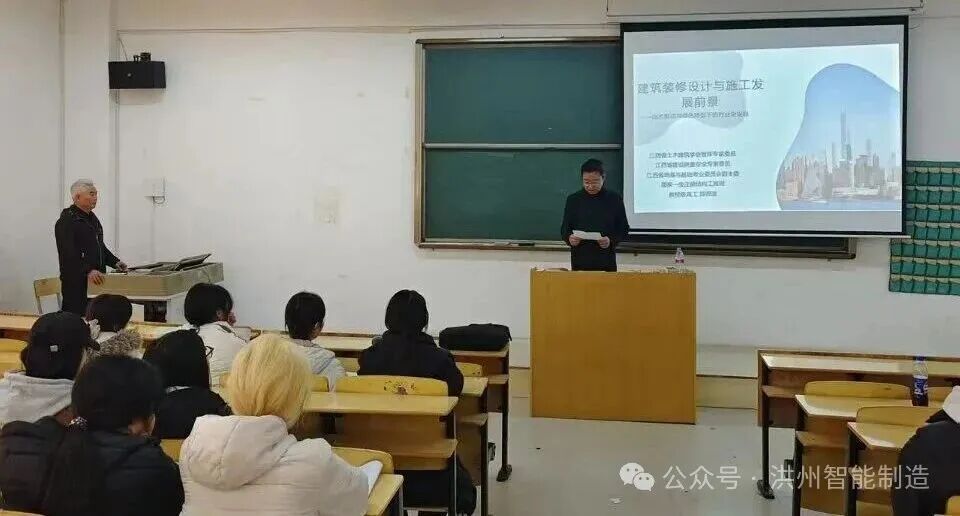 当“双学位学霸”遇上“15项专利发明人”,当设计院院长化身讲台讲师—今天这场《建筑装修设计与施工发展前景》分享,直接把行业前沿的“设计+施工”完整逻辑,打包装进了课堂,让同学们一次性摸清行业未来的脉络!