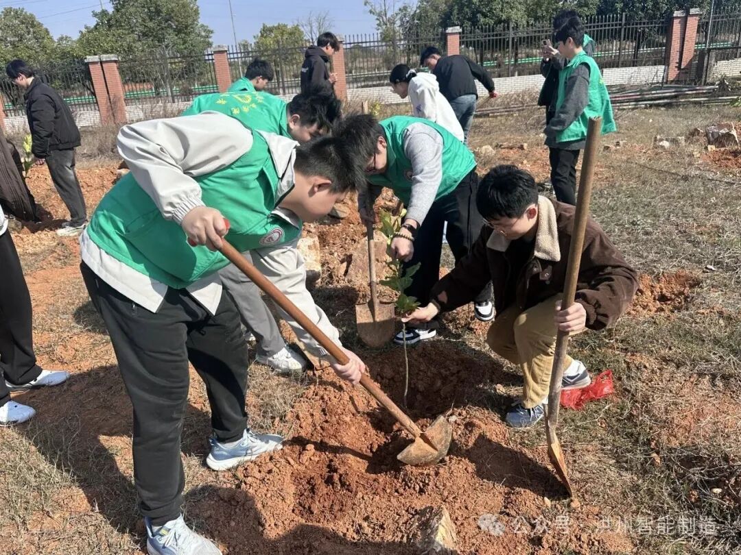 每一片新绿,都让地球更年轻;种植一抹新绿,让世界少一些碳息。春风拂新绿,植树正当时。为深入践行习近平生态文明思想与绿色发展理念,充分发挥党建带团建的引领作用,进一步凝聚师生绿色环保共识,3月12日下午2时30分,智能制造产业学院组织开展植树节主题实践活动。本次活动由学院党员教师、共青团员及学生代表共同参与,在校园北侧规划绿地以实际行动为校园增绿添彩,为生态文明建设赋能助力。