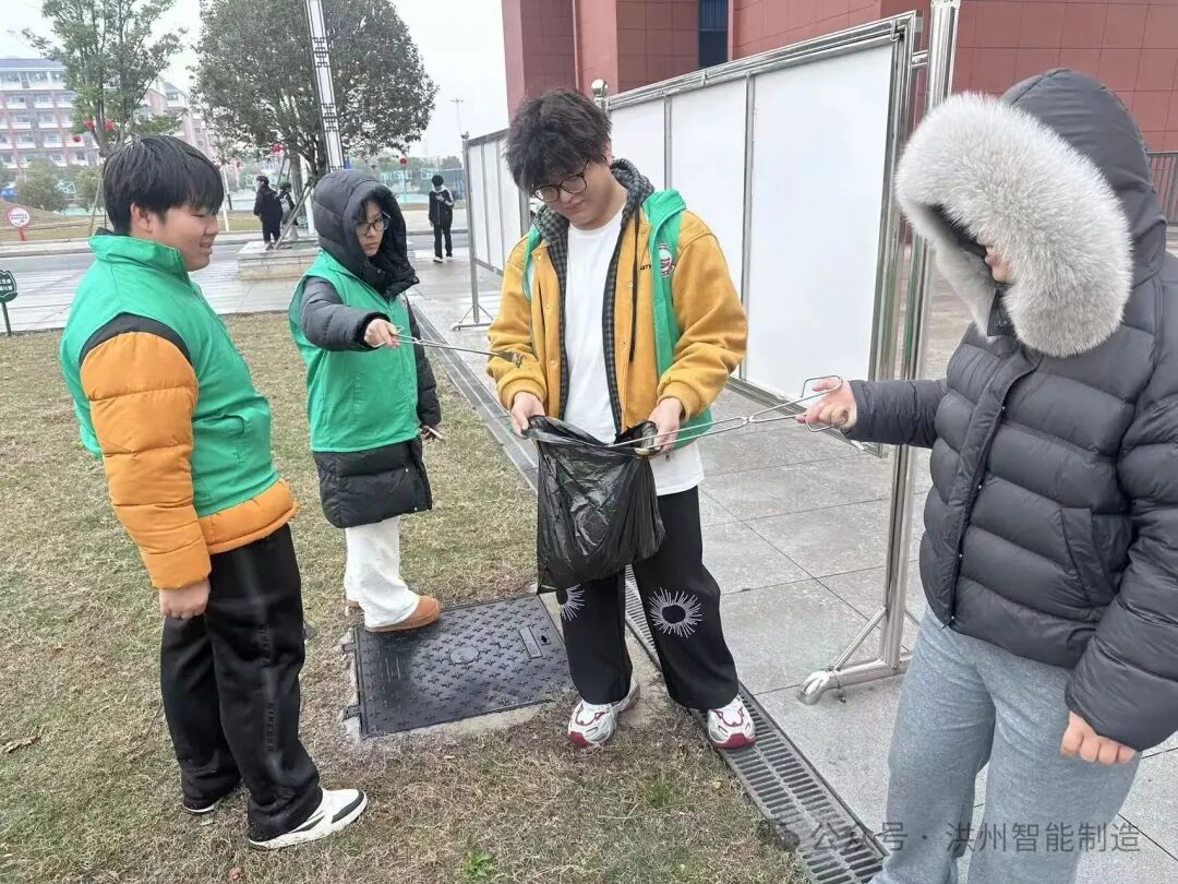 活动中,同学们手持垃圾夹、垃圾袋等工具,对校园草坪内的纸屑、塑料袋、烟蒂、枯枝落叶等垃圾进行细致捡拾与清理,用实际行动践行雷锋精神。劳动过程中,同学们不怕脏、不怕累,相互配合、干劲十足,充分展现出智能制造学子吃苦耐劳、乐于奉献的良好精神风貌。