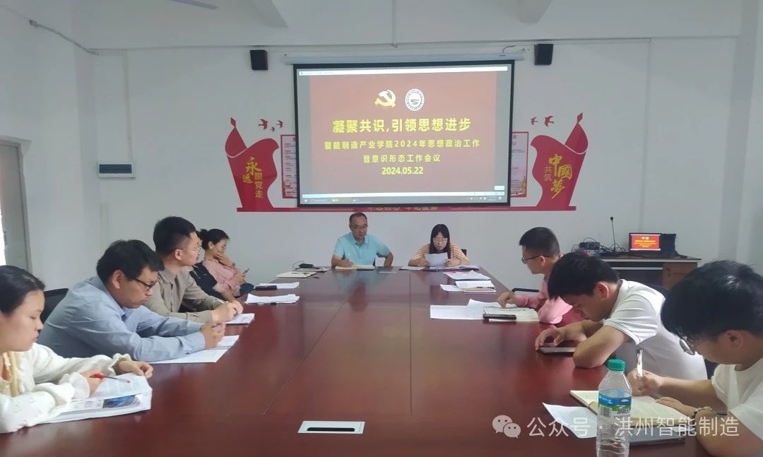 在高等职业院校的发展进程中,思想政治工作与意识形态工作始终占据着至关重要的地位。5月22日,智能制造产业学院在A202会议室召开思想政治工作暨意识形态工作会议,此次会议由黄小红书记主持,全院教师共同聚焦这一关键主题,探讨如何在新时代更好地推动我院思想建设,引领学生成长成才。