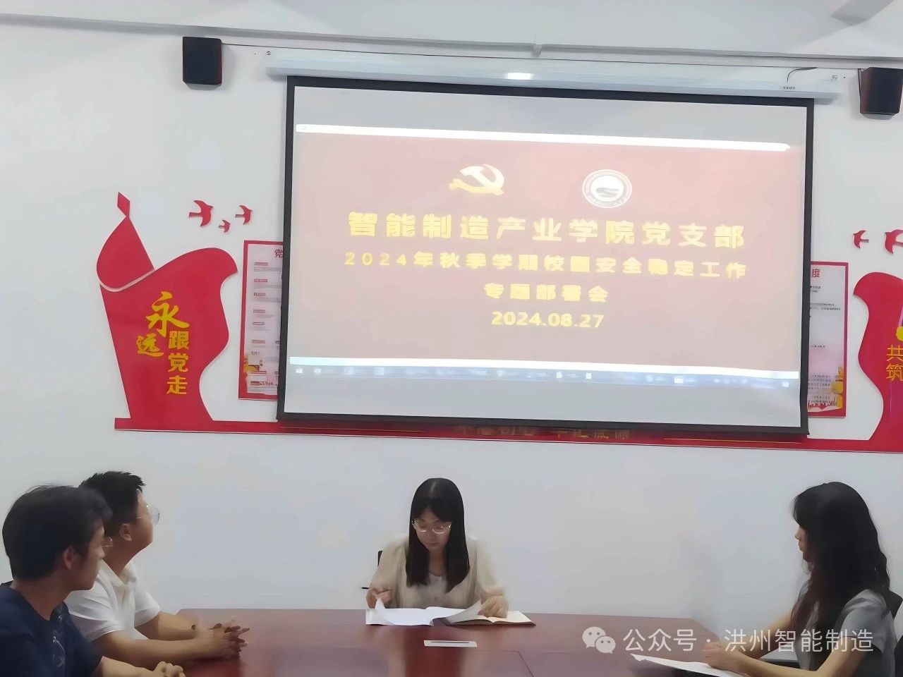 2024年8月27日下午,智能制造产业学院在A202召开2024年秋季学期校园安全稳定工作专题部署会。此次会议由党支部副书记黄小红主持,院长黄静以及全体教职工参加。