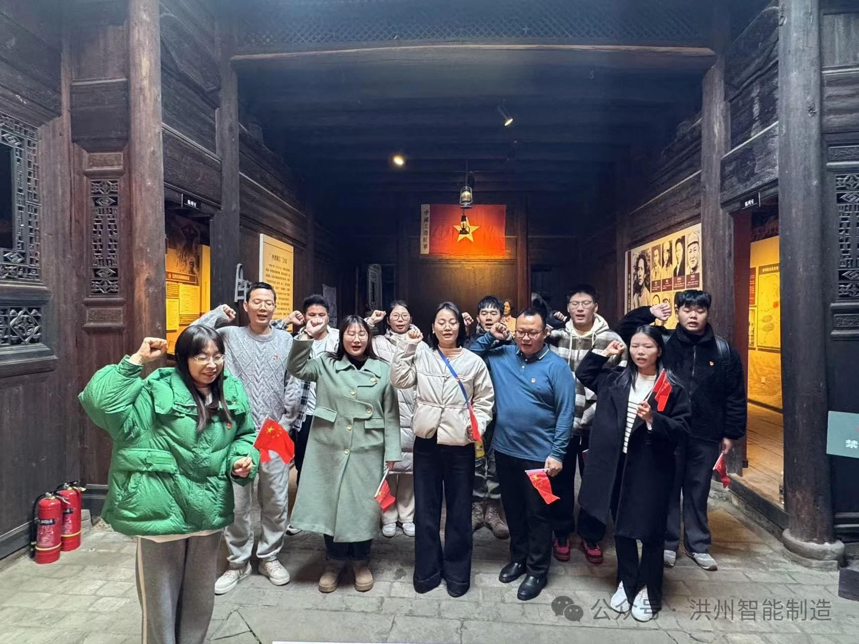12 月14 日,智能制造产业学院党支部在黄小红书记的带领下,组织全体党员和积极分子奔赴樟树市毛泽东旧居博物馆,开展了“点亮红色初心,践行使命担当”的红色走读活动。一场以“缅怀伟大领袖,奋斗新的征程”为主题、庄重肃穆的红色走读活动拉开帷幕,期间,党员们重温入党誓词,于历史的回响里重燃奋斗激情。