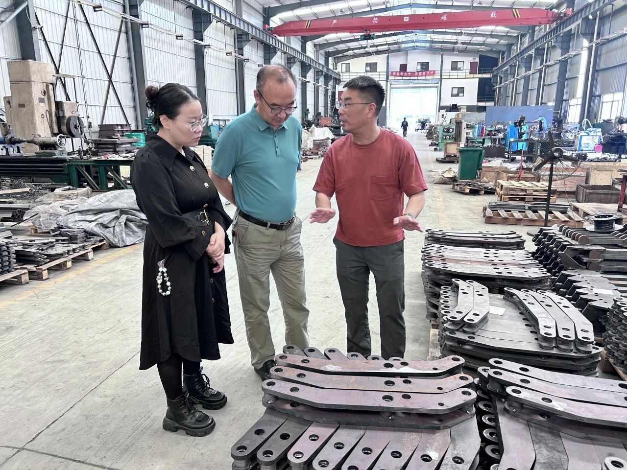 访问期间,学院领导一行在洪仁机械相关负责人的陪同下,深入企业生产一线进行参观。学院领导们认真观察每一个生产环节,不时与企业技术人员交流探讨,详细了解企业在智能制造技术应用、产品研发创新以及生产工艺改进等方面的情况。
