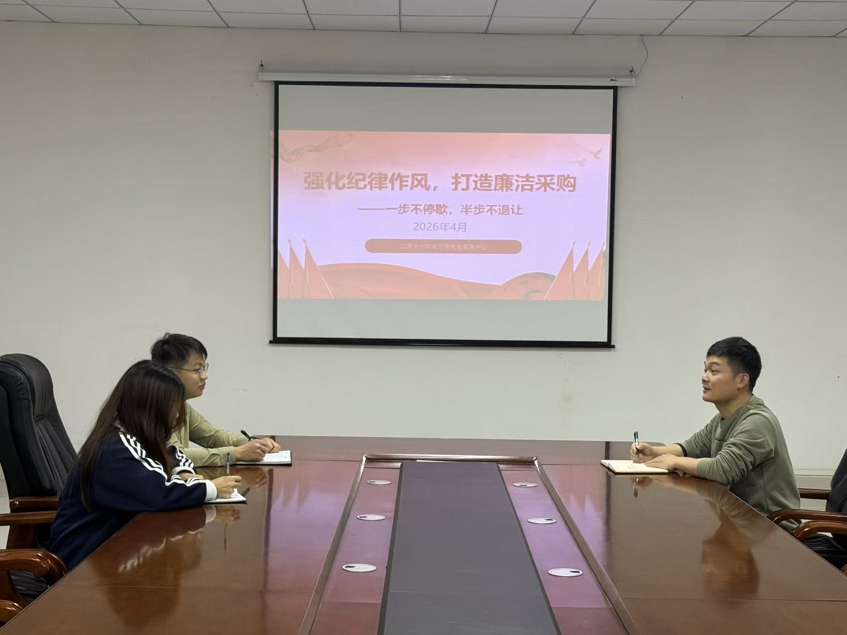 为深入贯彻全面从严治党战略部署,强化干部职工纪律作风建设,筑牢采购领域拒腐防变思想防线,打造廉洁高效采购队伍,树立和践行正确政绩观,4月13日上午,以“强化纪律作风,打造廉洁采购”为主题,商务采购中心在图书馆7楼会议室召开2026年廉政警示教育会。会议由商务采购中心副主任周佳主持,商务采购中心全体人员参加。