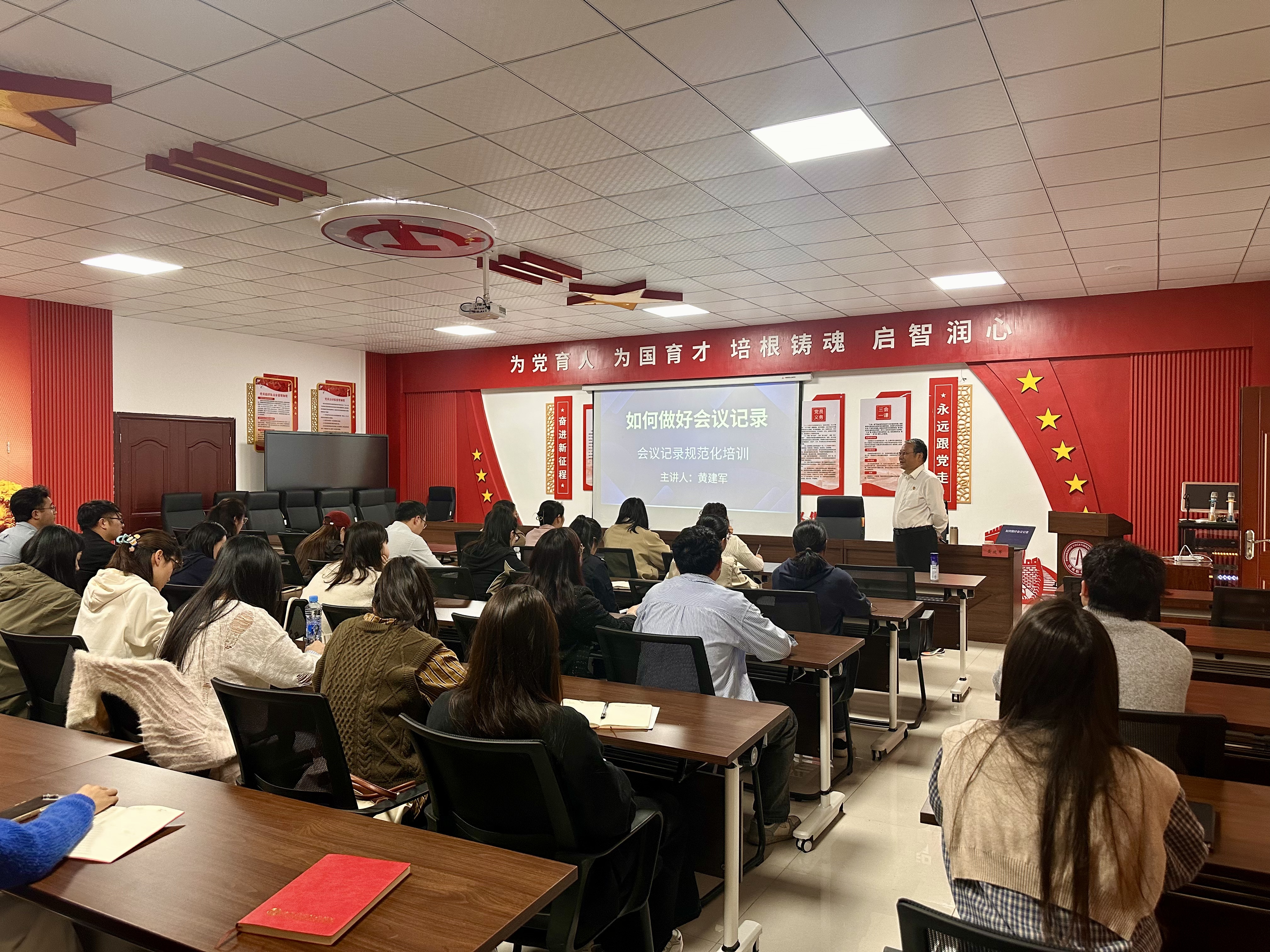 为进一步规范学校各类会议记录,强化会议记录的专业性、规范性与实用性,4月14日下午,学校党政办在图书馆九楼党员活动室举办规范会议记录专题培训班。各部门、各二级学院负责会议记录工作人员及党政办全体成员共30余人参加培训。