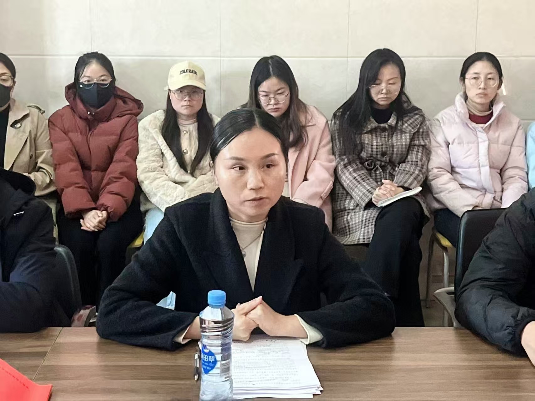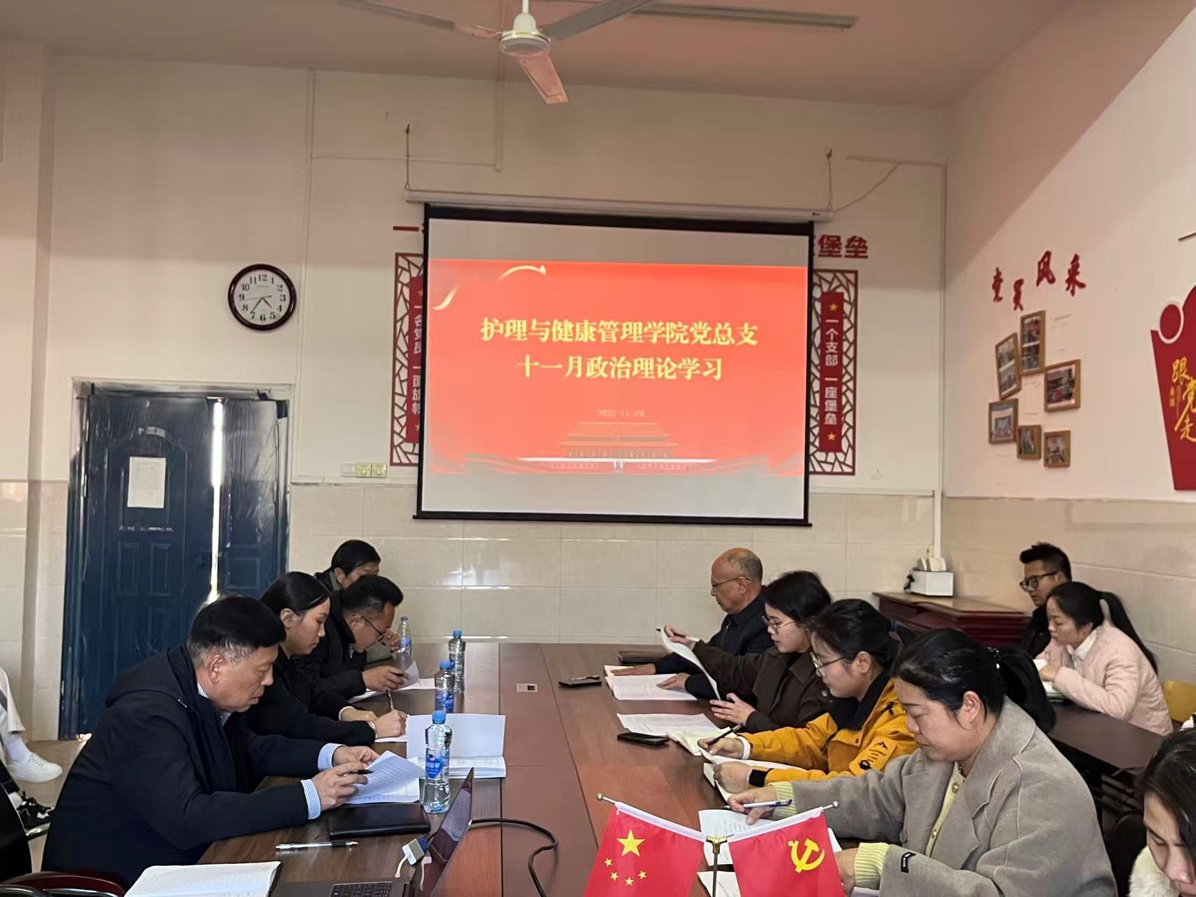 11月19日,护理与健康管理学院党总支召开政治理论学习会,深入学习贯彻党的二十届四中全会精神,深学细悟《习近平谈治国理政》第五卷、习近平总书记关于教育的重要论述。会议由学院党总支书记陈欣主持,学校纪委书记熊巧玲、团委副书记李茂刚、工会副主席列席并旁听指导。