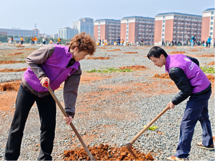 春阳和煦,绿意萌动。在第46个植树节到来之际,3月12日,护理与健康管理学院党总支联合院志愿服务队,开展“‘植’此青绿 共赴春约”主题实践活动。师生代表与志愿者们携手植树护绿,以劳动践行生态文明理念,为春日洪职增添新绿。