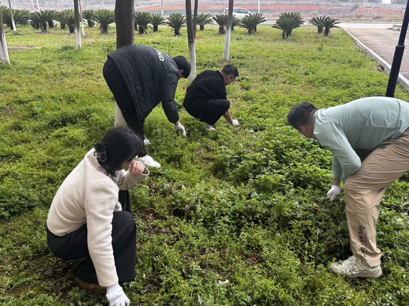 全体人员准时集结,领取劳动工具后迅速投入劳作,俯身认真拔除绿化带内杂草。全程不怕脏、不怕累,以实际行动美化校园环境。党员同志充分发挥先锋模范作用,带头苦干实干,入党积极分子主动担当、专心劳作,在劳动中践行志愿精神。