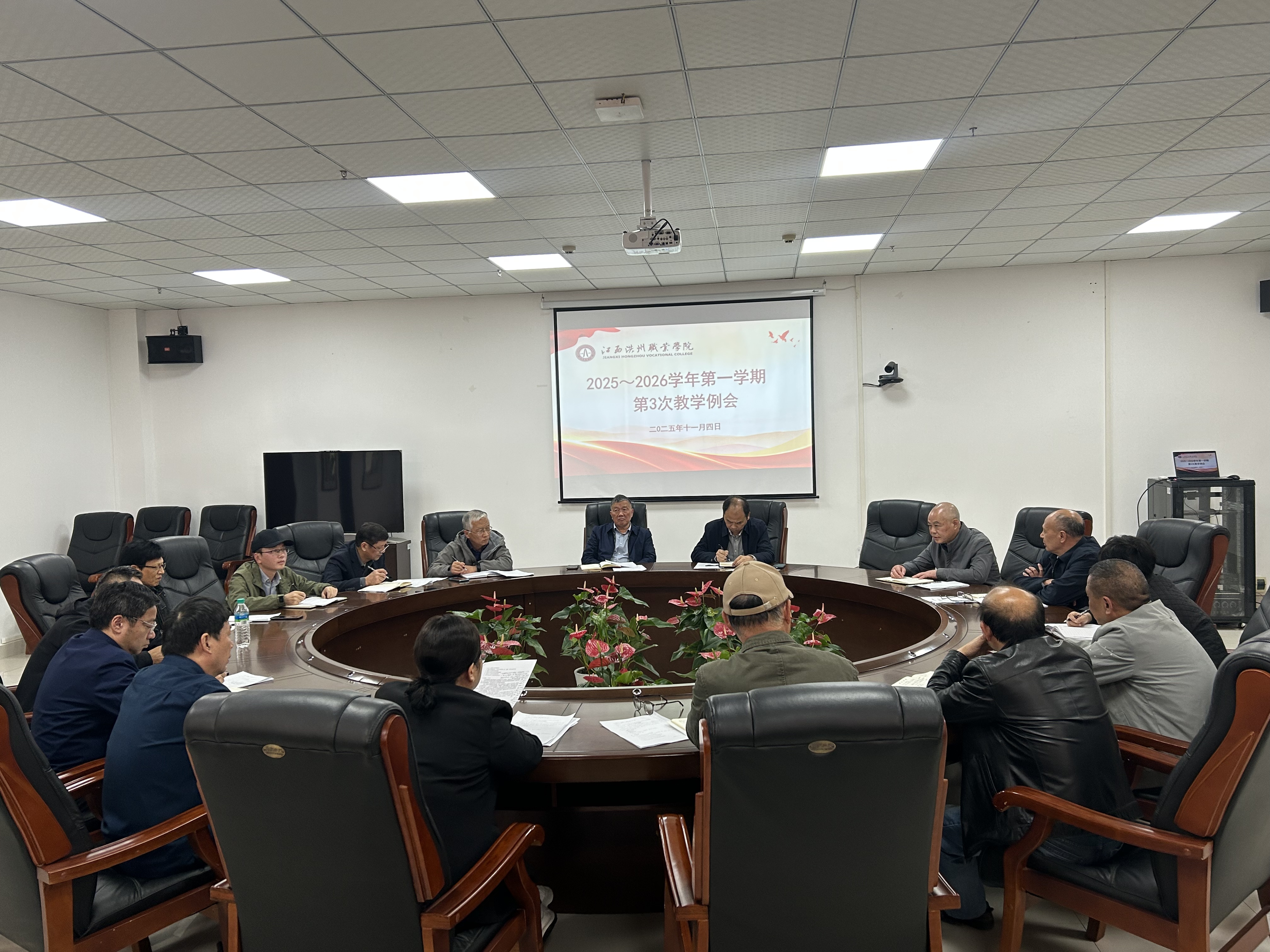 11月5日下午,学校在图书馆八楼会议室召开2025年秋季学期第三次教学工作例会。校长刘权辉、副校长傅箭星出席会议。教务处、科研处、实训中心、质量检测与评估中心、各二级教学单位部门负责人及相关人员参加会议,会议由教务处处长方元春主持。