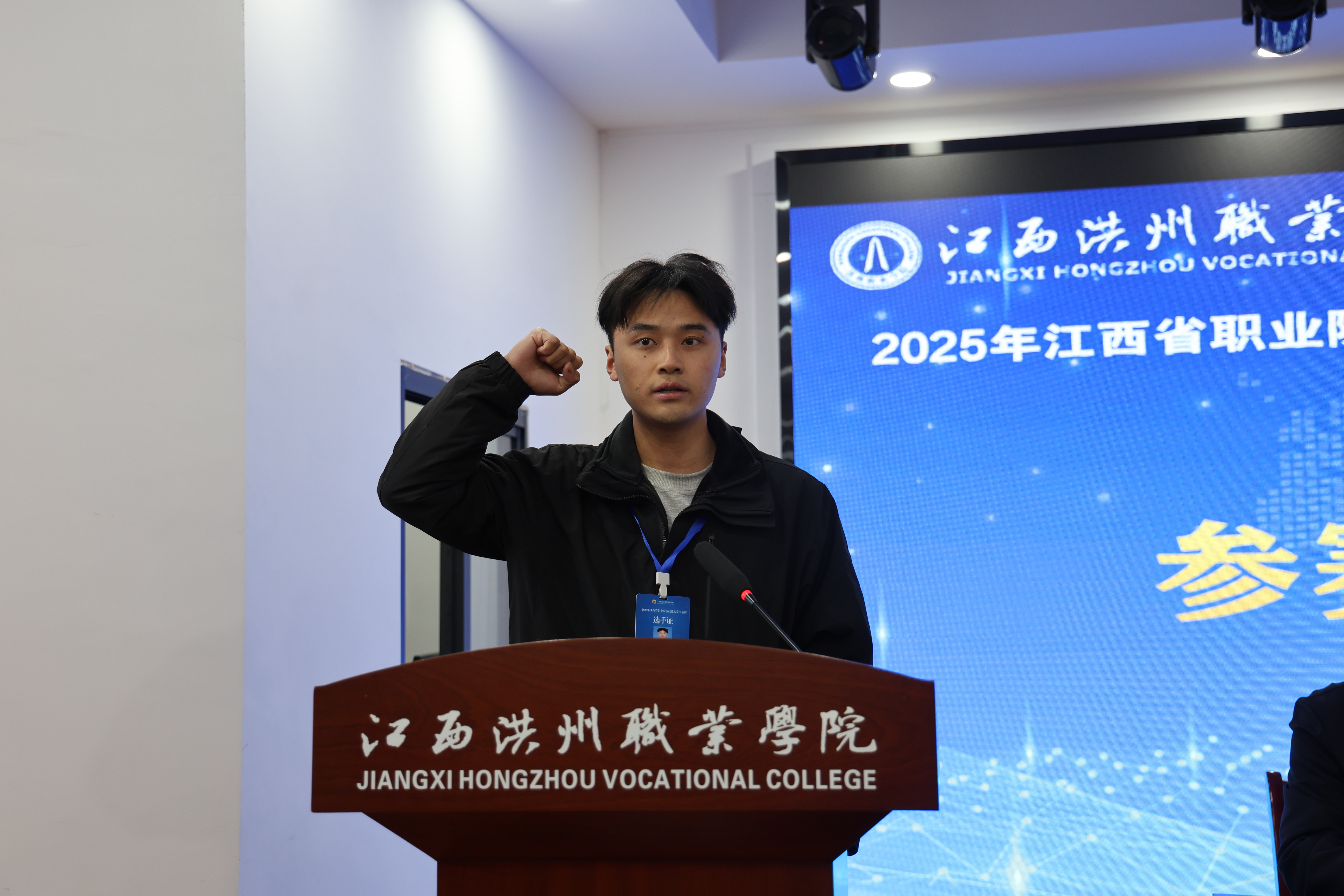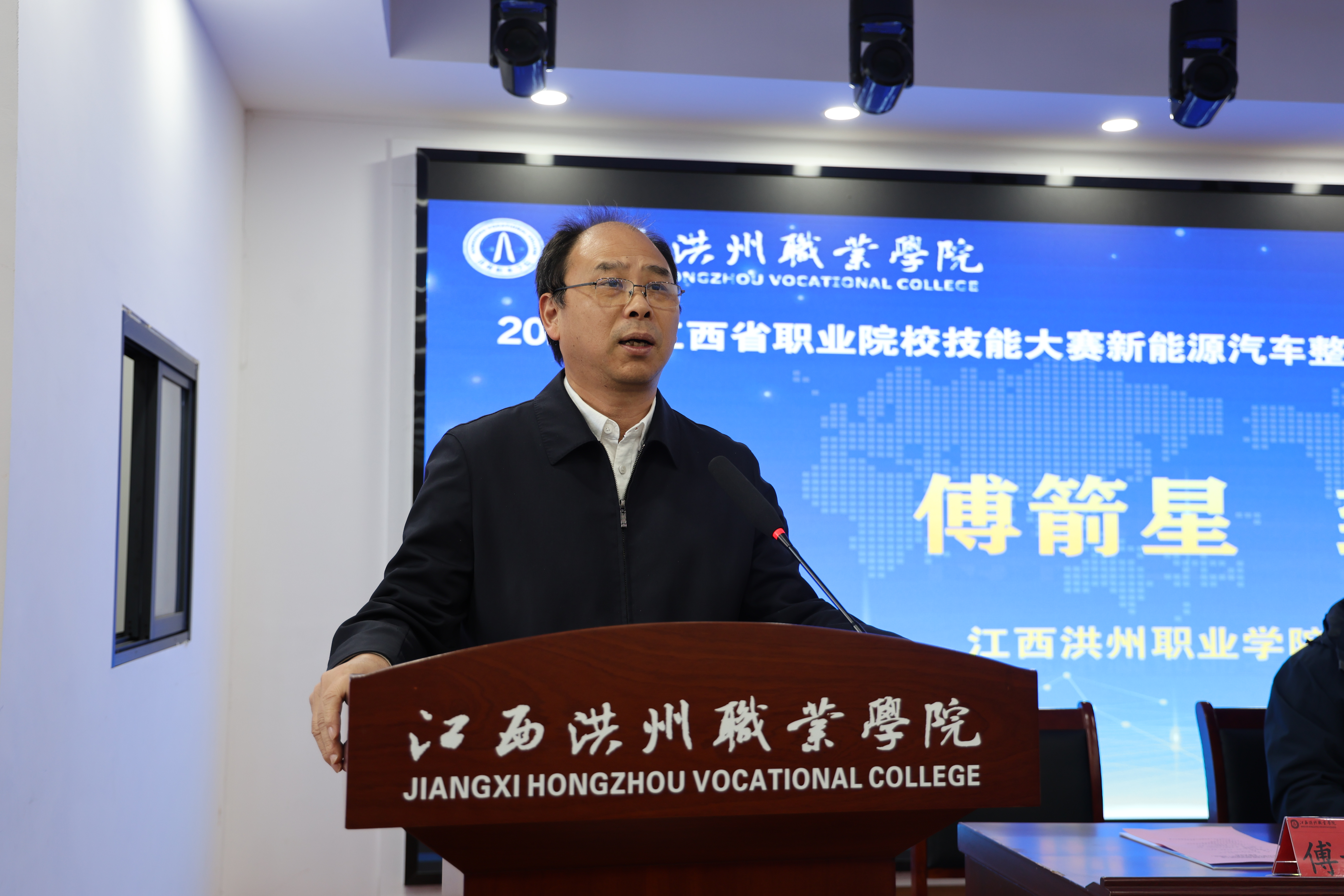 江西洪州职业学院副校长傅箭星在致辞中指出,新能源汽车产业作为国家战略性新兴产业,正处于蓬勃发展的黄金阶段,高素质技能人才是支撑产业高质量发展的核心力量。本次大赛为全省高职学子搭建了技艺切磋、经验交流、共同提升的重要平台,希望参赛选手们以赛促学、以赛促练,在比拼中锤炼技能、展现风采,践行技能成才、技能报国的青春誓言。