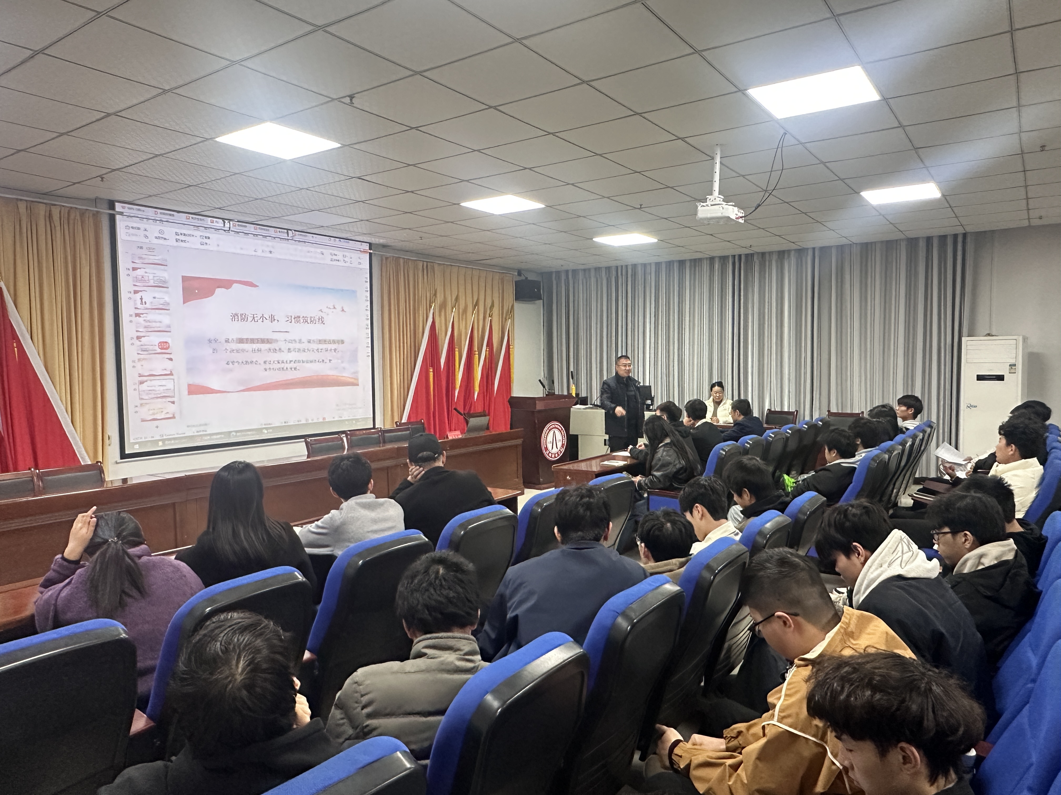 12月3日,副校长关爱国走进智能制造产业学院,以“筑牢现代化校园安全治理体系,以高水平安全保障学校事业高质量发展”为主题,为智能制造产业学院师生代表讲授了一堂主题鲜明、内容扎实的思政公开课。