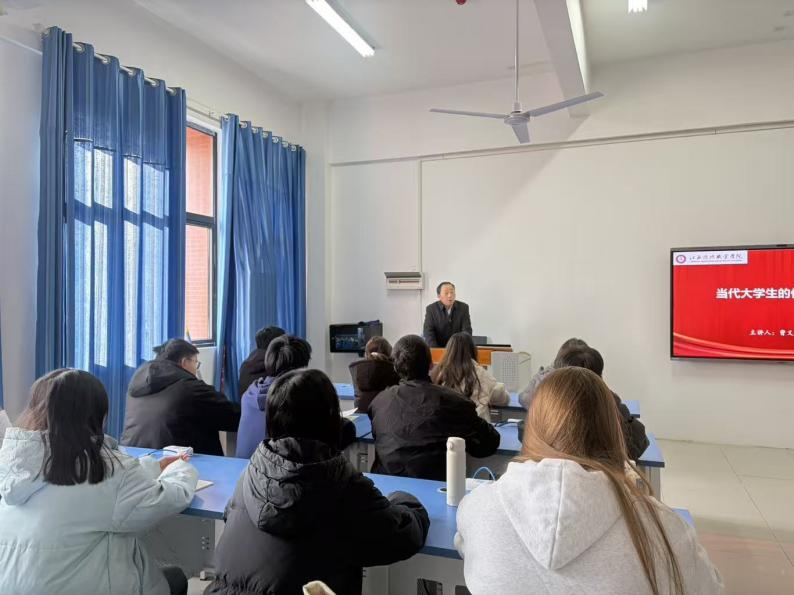 12月3日下午,副校长曹义亲以“当代大学生的价值准则”为主题,给数字产业学院25级计算机网络技术班的同学们上了一堂内涵丰富、生动深刻的思政课。