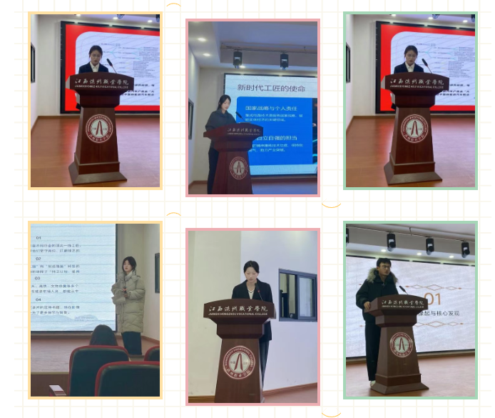 决赛现场,选手们围绕所选书籍,结合自身专业学习、实践经历与人生感悟,多维度诠释工匠精神的时代内涵。有的通过著作解读“执着专注、精益求精、一丝不苟、追求卓越”的精神密码,有的通过人物纪实讲述平凡劳动者成就不平凡事业的感人故事,有的通过分享专业书籍畅谈如何将书中的技艺和理念与未来的职业发展相融合。比赛现场气氛热烈,掌声不断。
