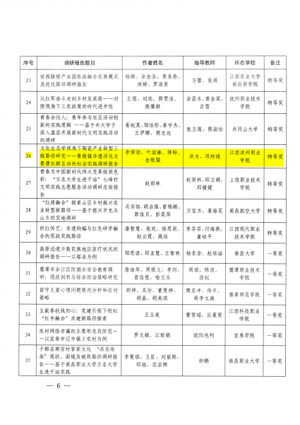 2、“优秀团队”称号:“铜鼓乡兴调研队”(指导教师:游子豪、钱倩文、黄明婷)