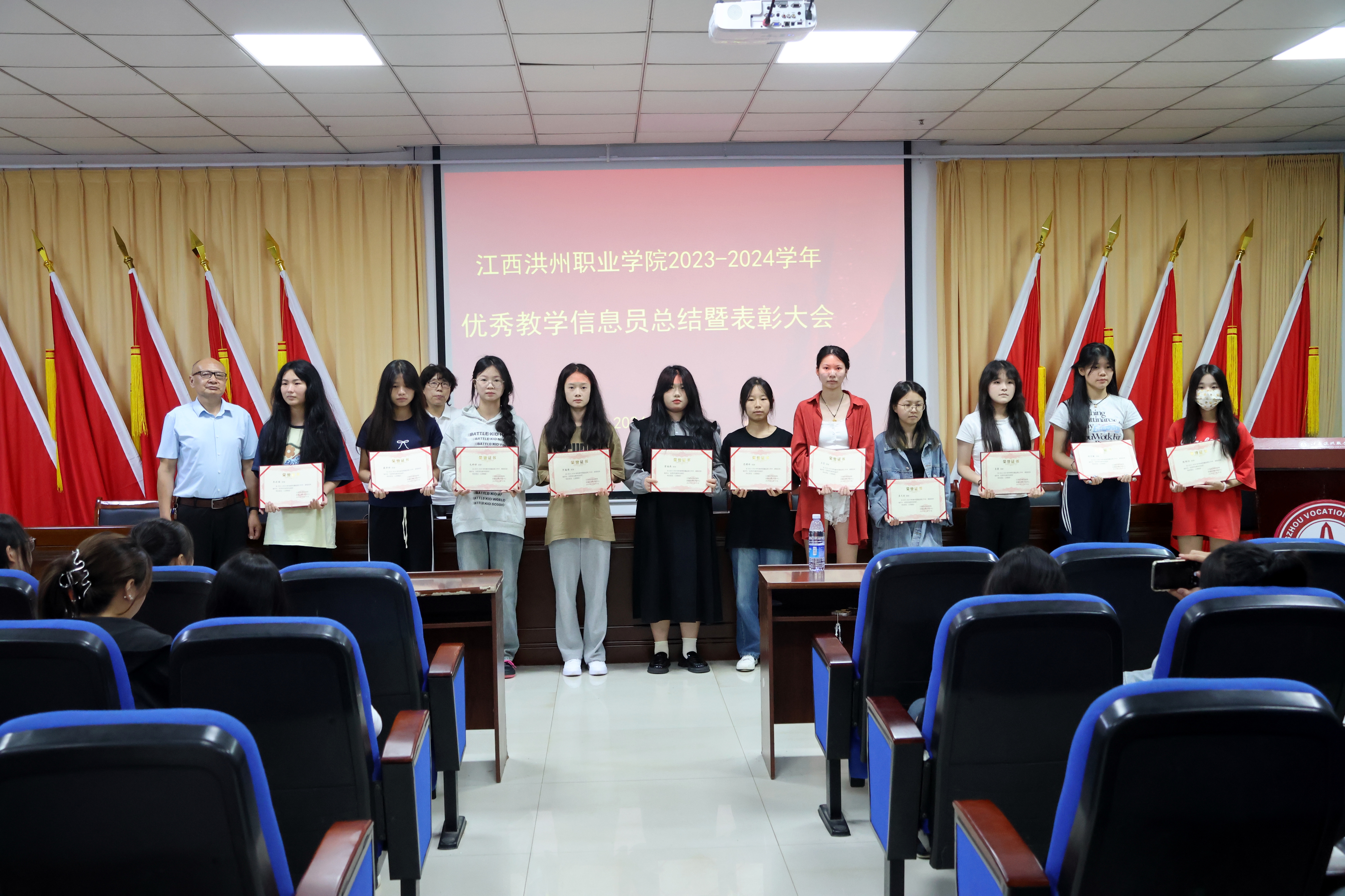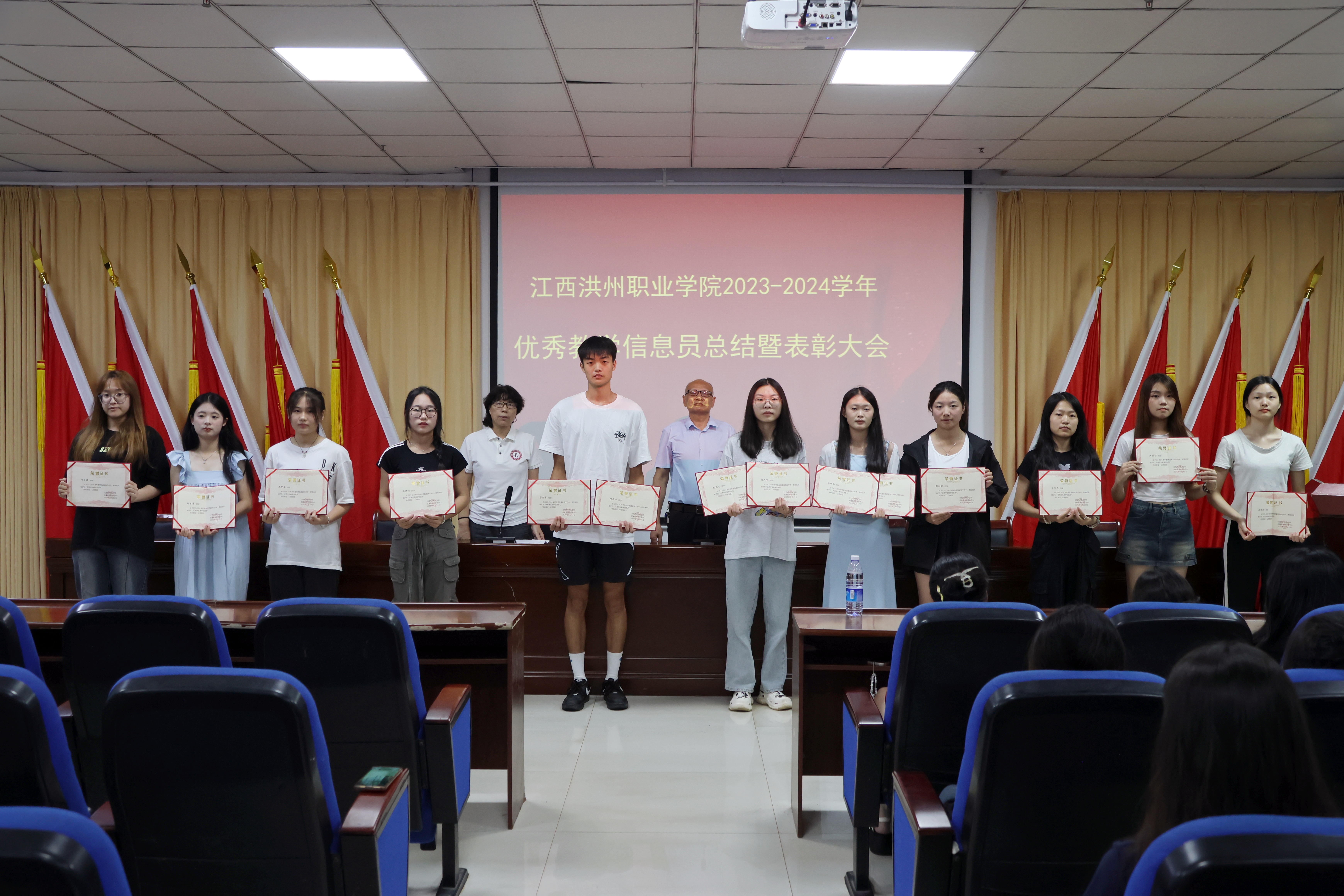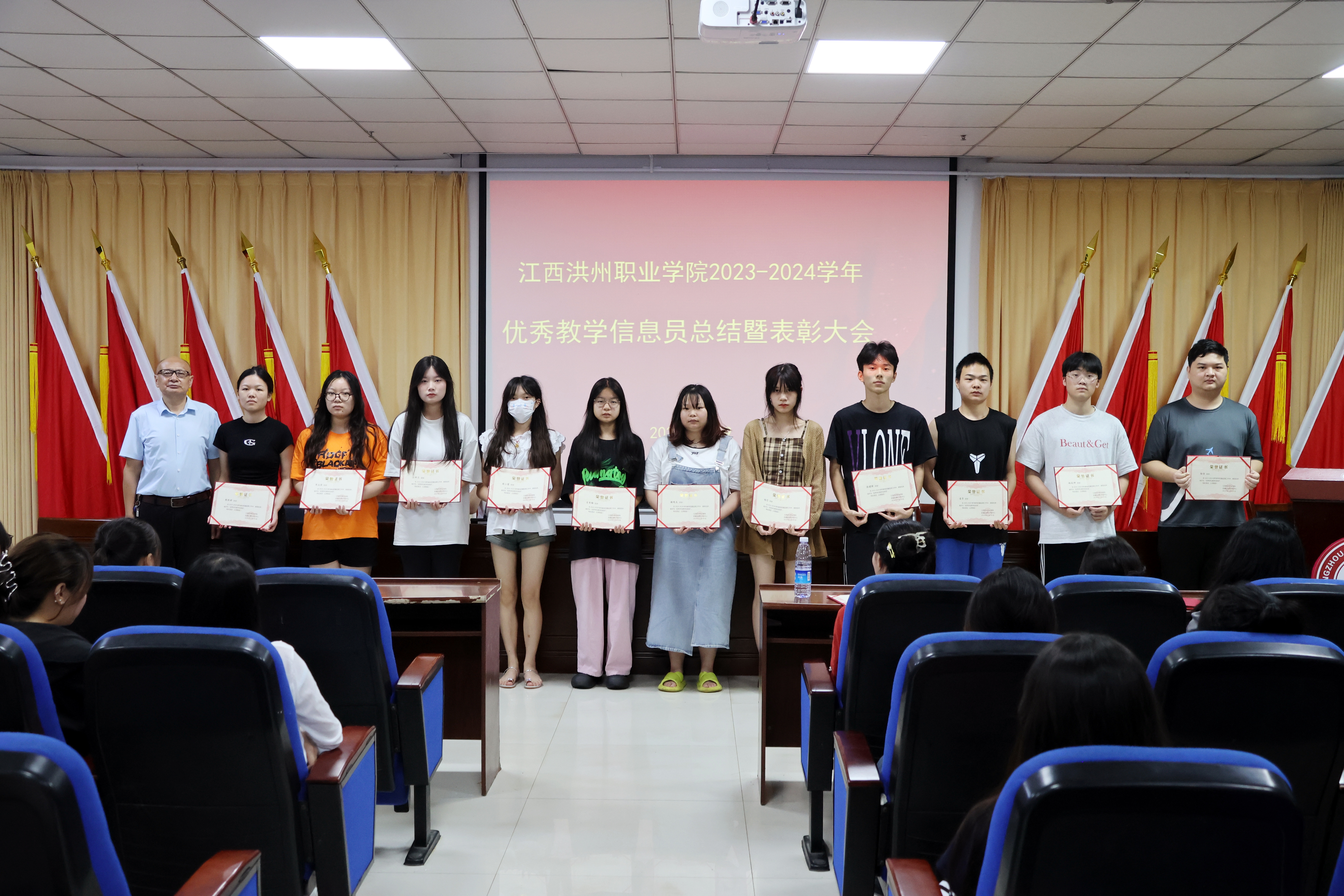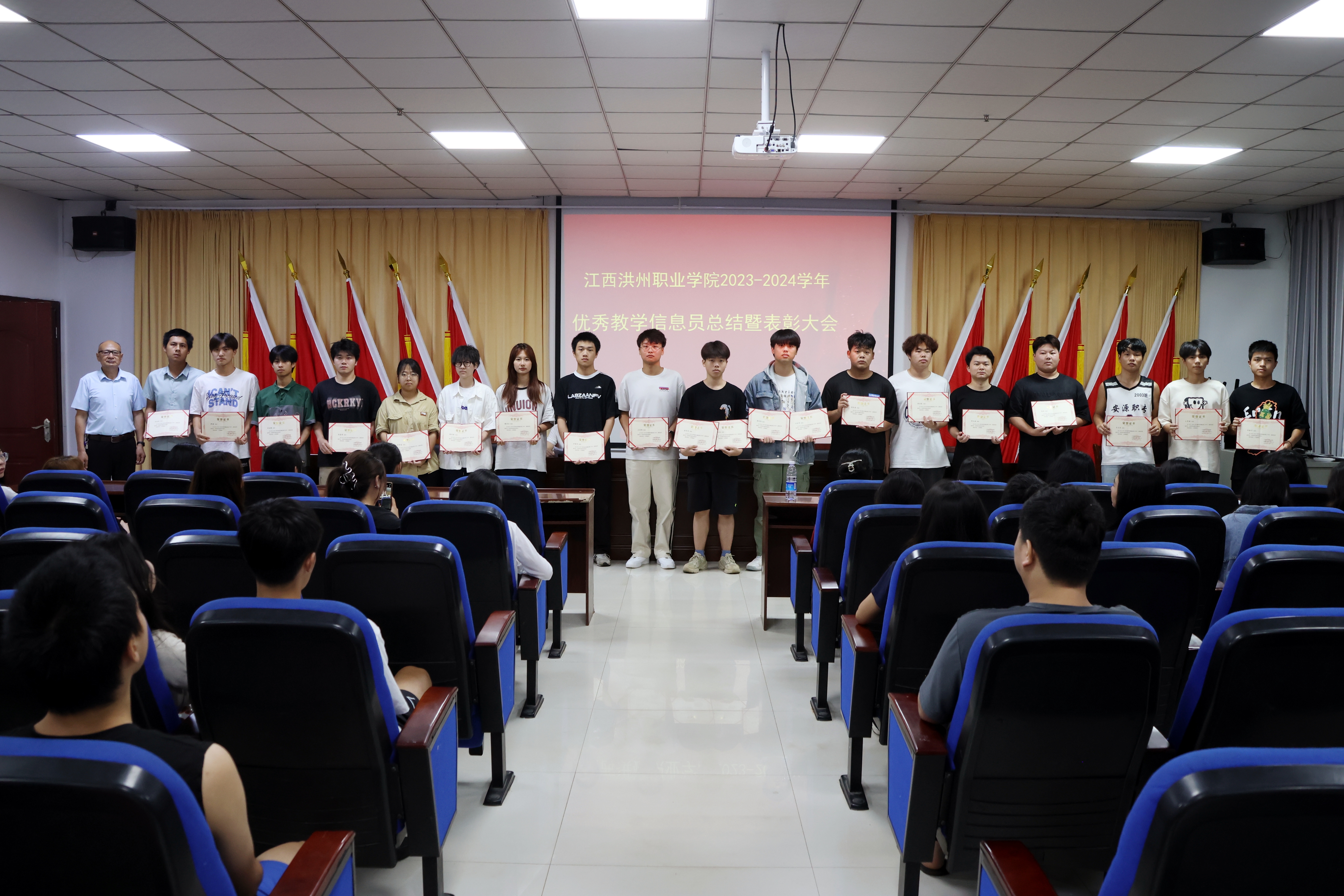 会议宣读了《关于表彰2023-2024学年“优秀学生教学信息员”的决定》,对59名获得“优秀学生信息员”荣誉称号的同学颁发了证书。