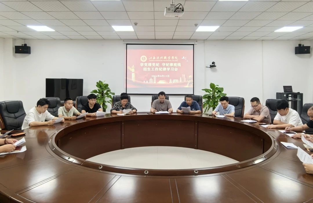 会议对前期2024年单独招生的情况进行了总结,对前一阶段的招生工作进行了肯定,并分析了存在的问题及原因。并进一步组织大家学习了《江西省民办高校办学行为三年行动计划(2022-2024)》《江西洪州职业学院招生老师不良招生行为信用积分》等文件精神和教育部“六不准”“十公开”“十严禁”“三十个不得”等内容,切实加强对招生人员的廉洁招生和阳光招生教育。