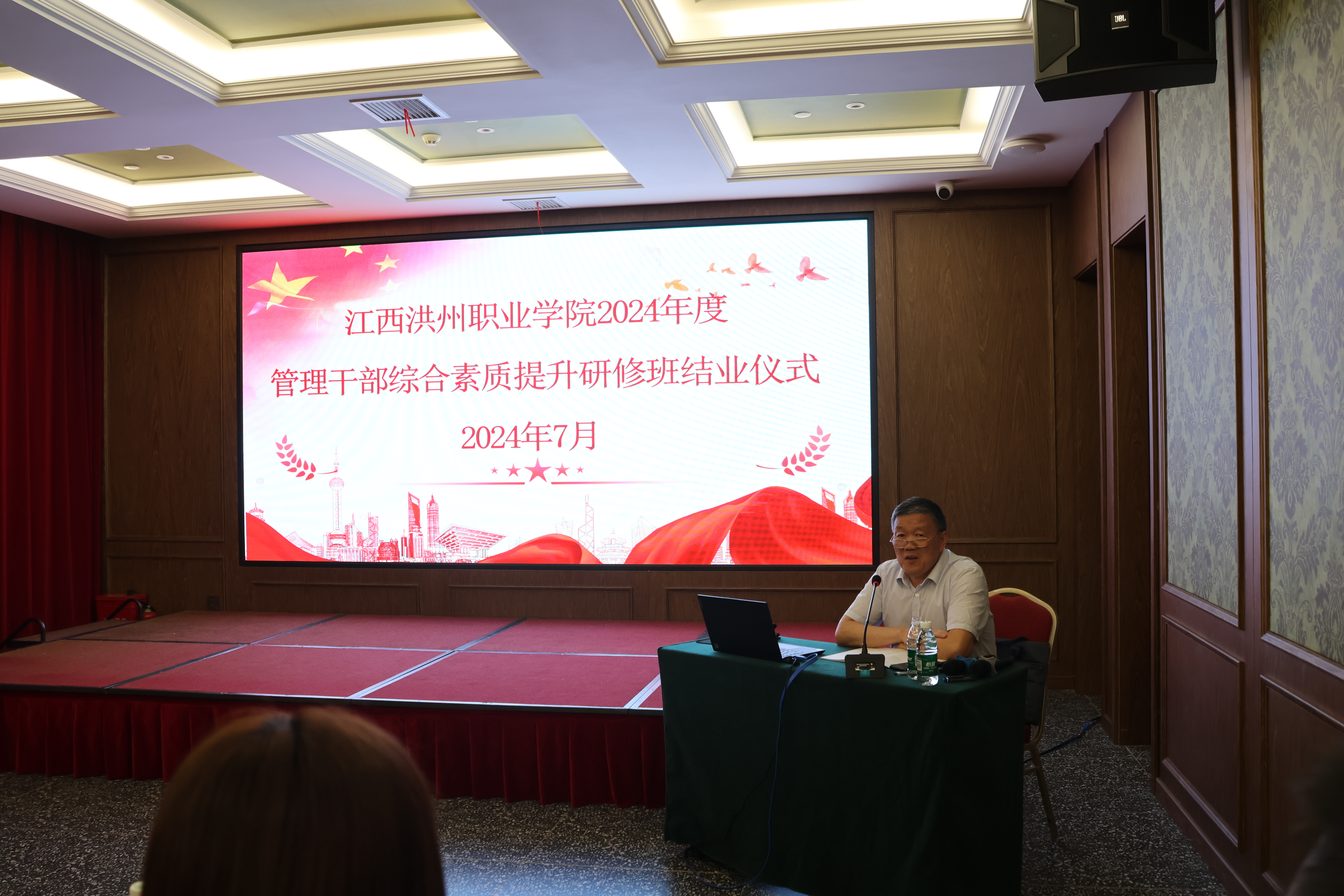 结班仪式上,刘权辉对本次研修班进行了总结。他对专家教授们主题鲜明、针对性强、高水平的精彩授课给予了高度称赞,同时,对全体管理干部提出了要求:一是眼里有方向。要牢固树立政治意识、坚持正确的政治方向,规划职业教育发展方向,根据学校未来发展方向制定好个人工作目标。二是胸中有情怀。要始终树立“衣带渐宽终不悔,为伊消得人憔悴”的教育情怀、“洪州即我家,我爱我家”的洪州情怀和“以生为本、以师为尊”的师生情怀。三是肩上有责任。要担起政治责任和发展责任,以等不得、慢不得的紧迫感和教育部的要求规范办学。四是脚下有力量。要持续加强学习,培养艰毅果敢的韧劲,不断提升自身认知和工作能力,充分调动每个人干事创业的积极性和创造性。