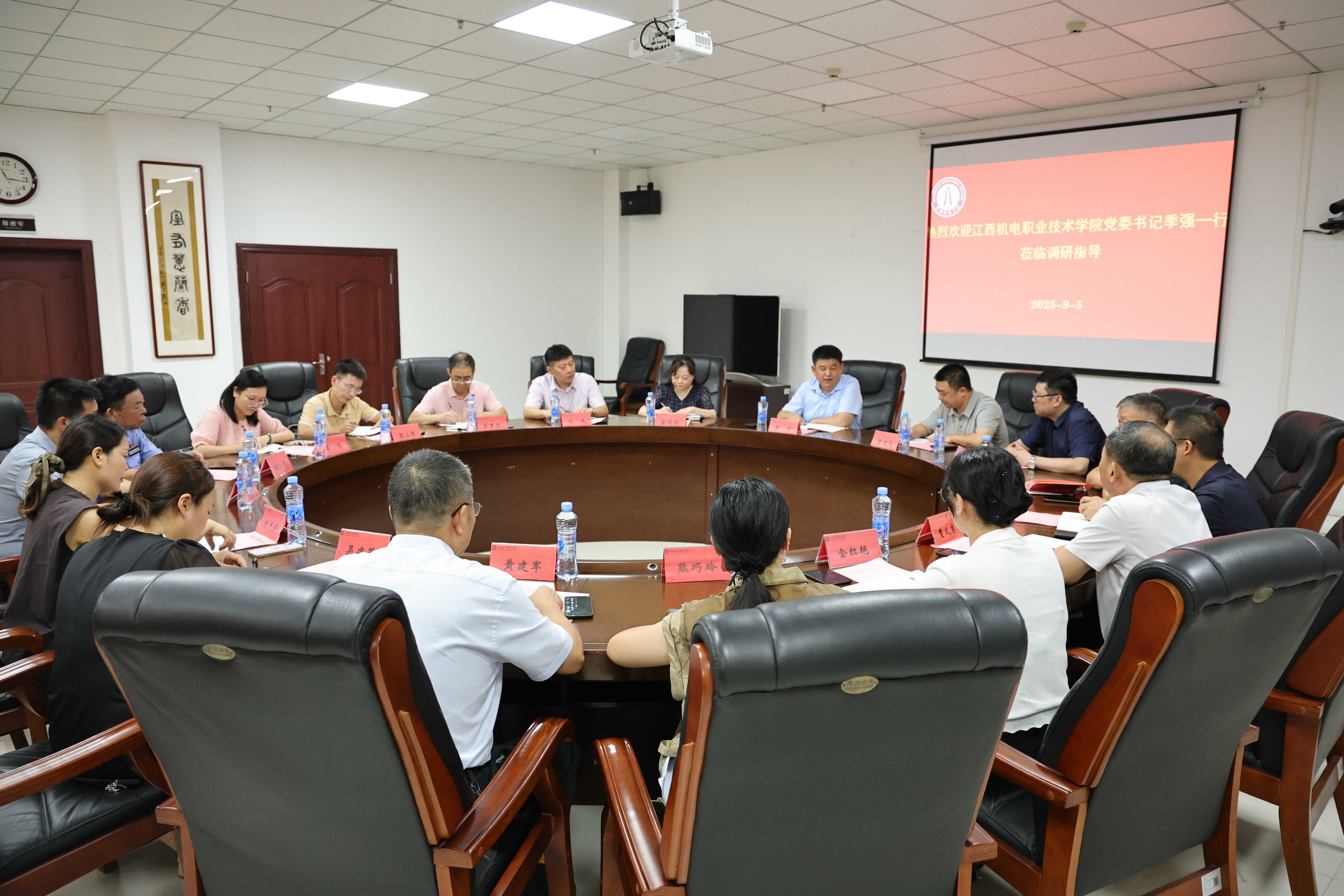 9月5日,江西机电职业技术学院党委书记季强一行莅临学校开展调研指导,旨在全面了解学校党的建设、依法治校、校园安全等方面情况,为学校高质量发展提供精准指导与有力支持。学校理事长陈建兵,党委书记、督导专员梅甜甜陪同调研。