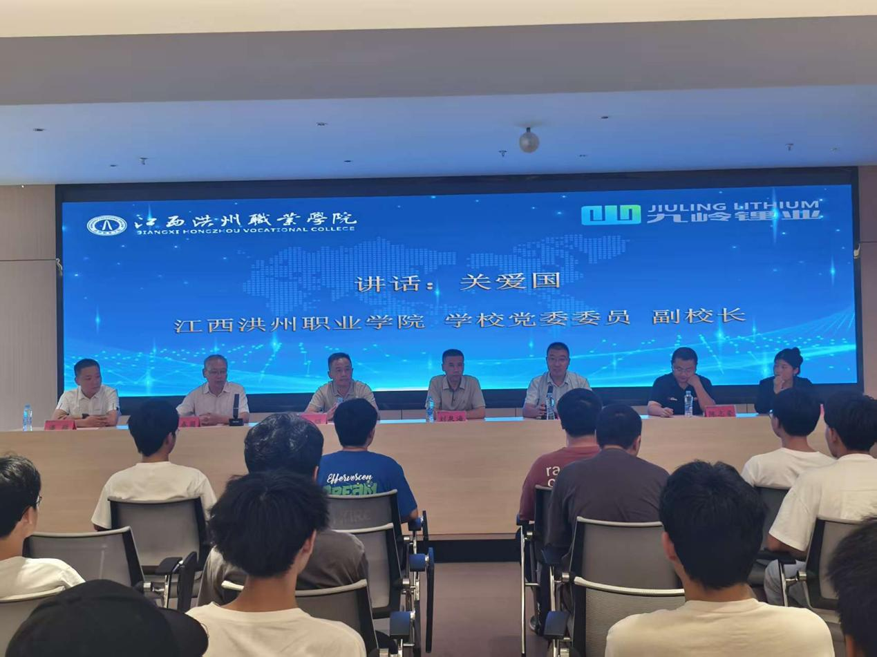 学校副校长关爱国、新能源产业学院院长徐昭,江西九岭锂业股份有限公司丰城分公司人事部经理刘泉海、生产部副经理陈志豪、安环部经理潘颖等校企双方代表以及新能源锂电专业现场工程师班30名学生参加开班仪式。仪式由学校新能源产业学院党总支副书记韩春萌主持。