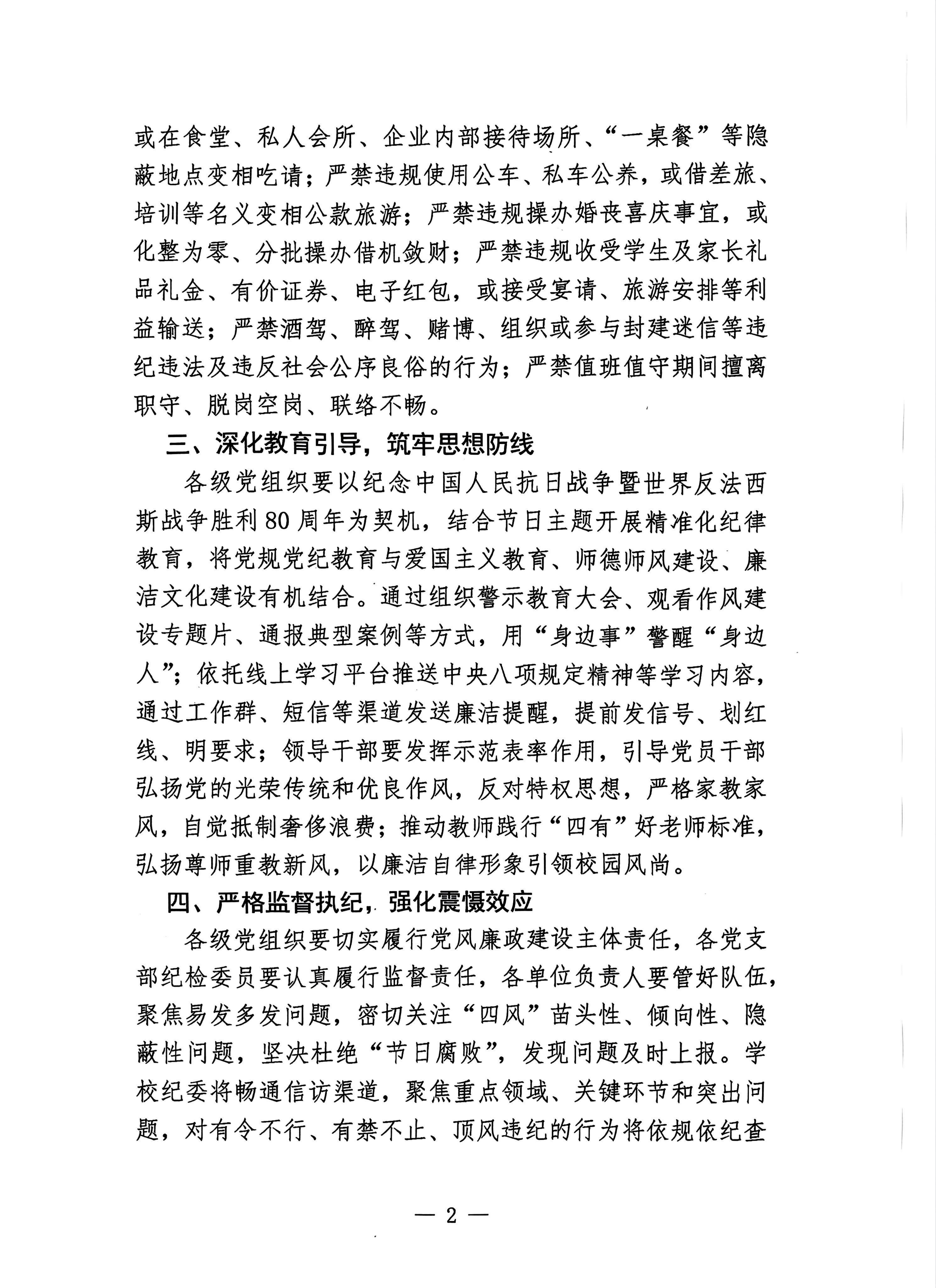 首页栏目 新闻综合 美丽校园 通知公告 下载中心 媒体关注 学校视频 通知公告 当前位置: 首页 > 首页栏目 > 通知公告 > 正文 关于严明 2025 年国庆节、中秋节期间廉洁纪律的工作提醒 时间:2025-09-29 责任编辑:李华丹 初审:李华丹 二审:陈玉清 终审:杨金平 阅读量:146 下一篇:江西洪州职业学院2025年统招招生简章