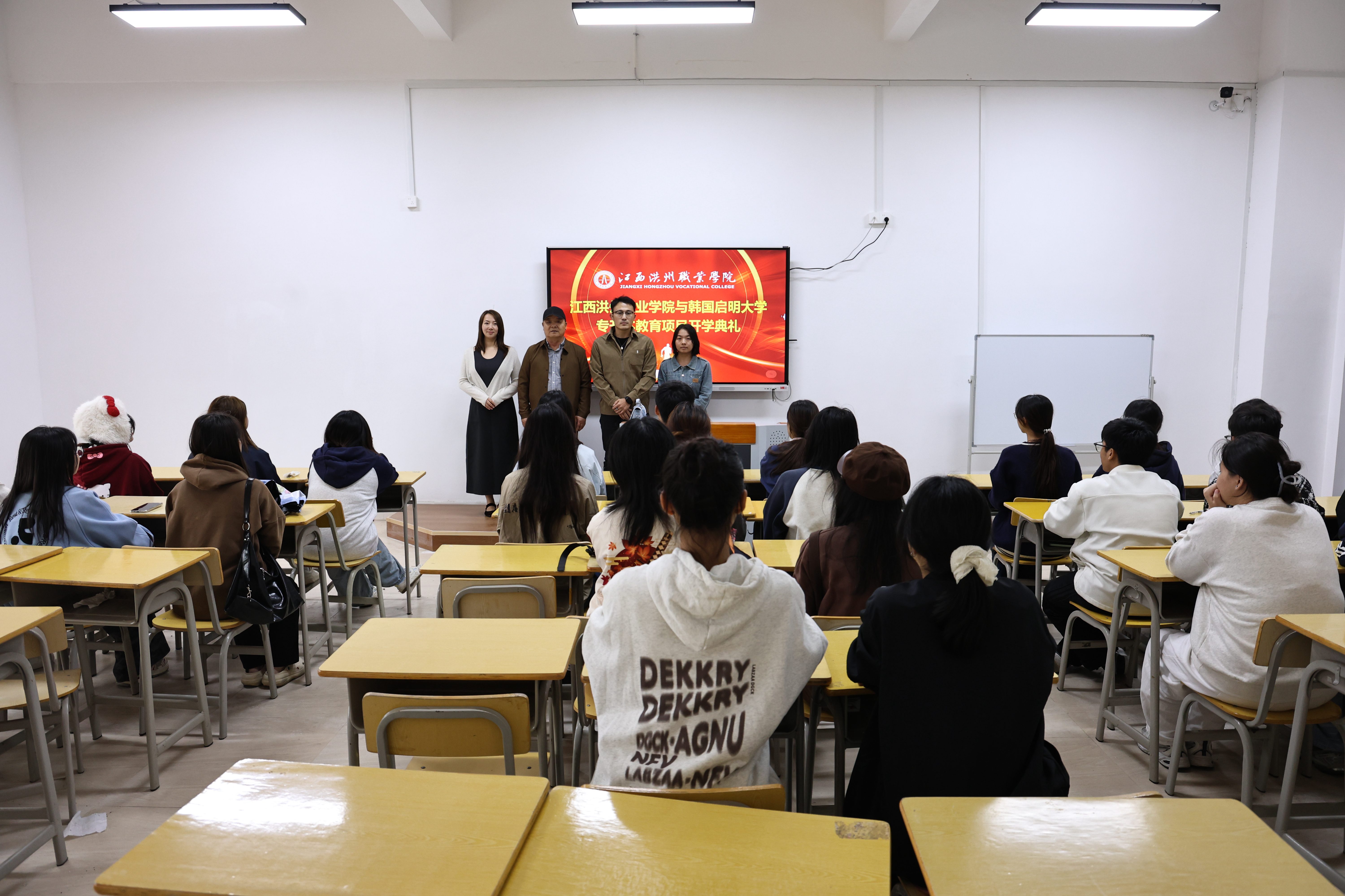十月金秋,馥郁桂香沁染校园。10月20日我校与韩国启明大学专升本教育项目开学典礼在学校国际交流中心隆重举行,标志着两校在人才联合培养、教育资源共享领域的合作正式落地。韩方院校代表胡美珍、韩语教学团队,江西洪州职业学院国际交流中心负责人及相关教师,与首批参与专项项目的部分在校同学共同出席典礼,见证这一重要时刻。