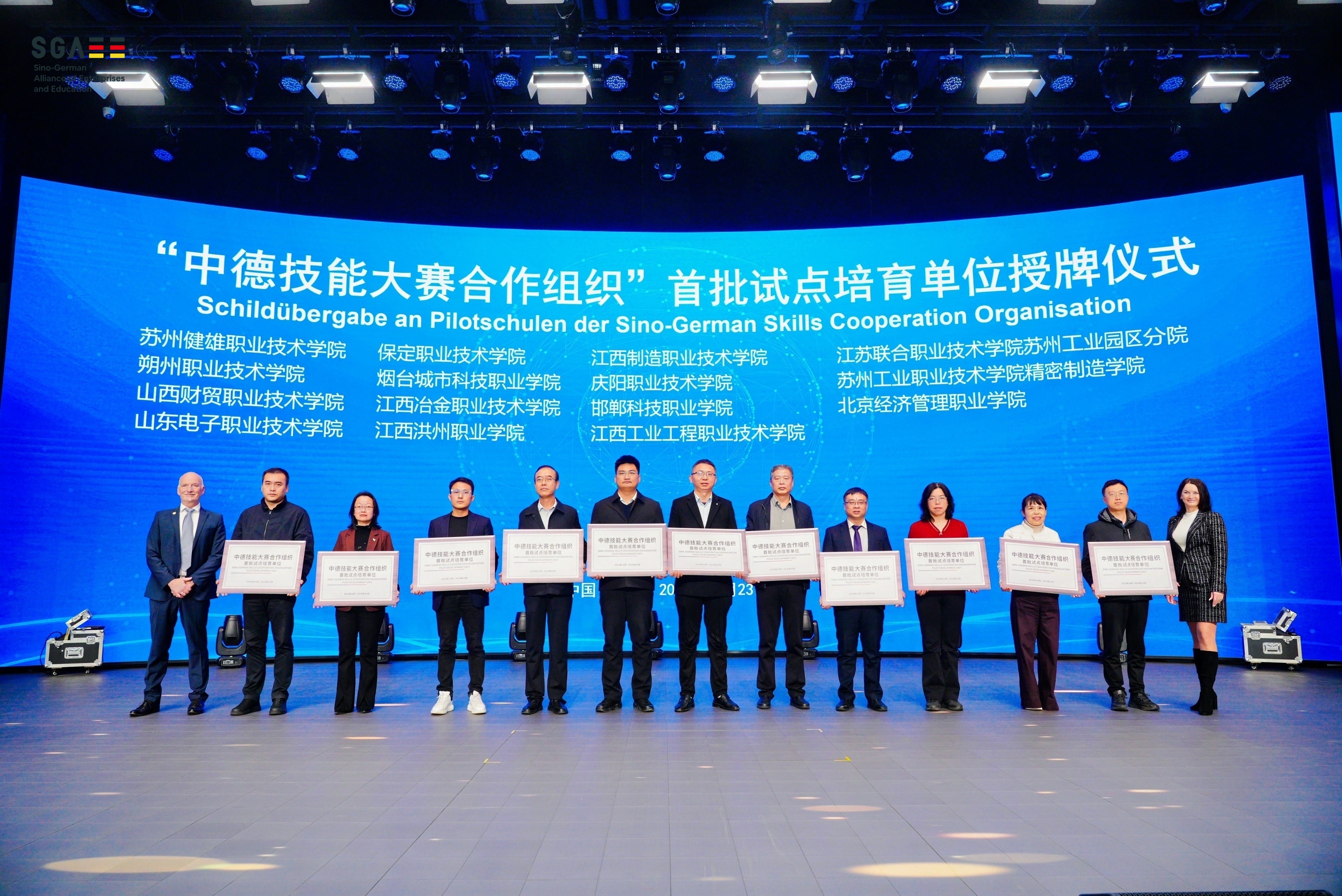 会上,学校被授予“中德智慧康养产业学院”试点培育单位和“中德技能大赛合作组织”首批试点培育单位。