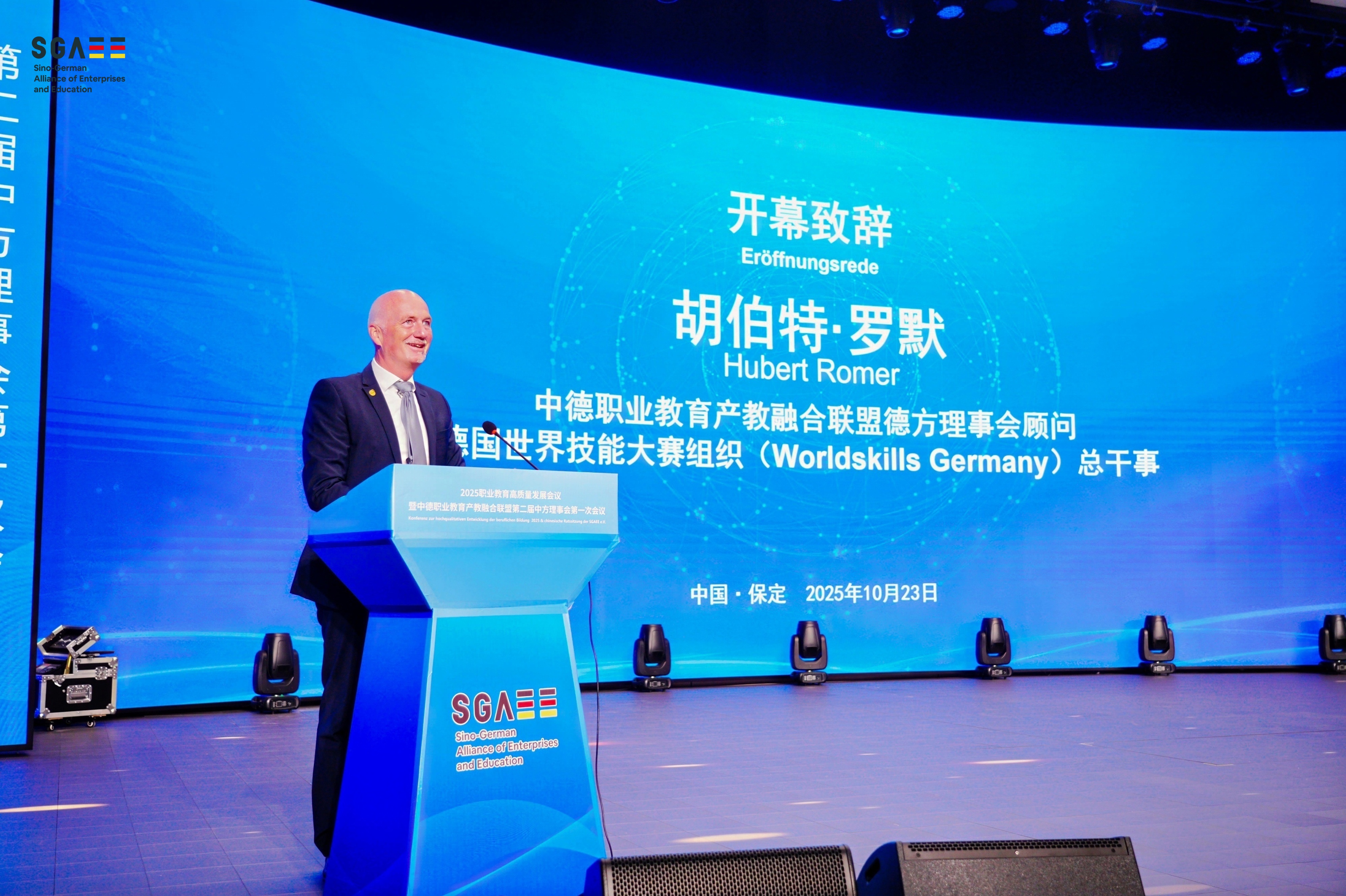 10月22日至24日,河北省保定市人民政府、欧美同学基金会、河北欧美同学会、德国世界技能大赛组织与中德职业教育产教融合联盟在河北省保定市举办2025首届京雄保职业教育高质量发展大会暨中德职业教育产教融合联盟第二届中方理事会第一次会议。学校国际交流中心主任吴杰代表学校参加了此次会议。
