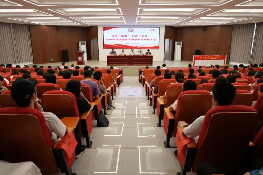 为深入贯彻党的二十大精神,落实立德树人根本任务,全面提升学校课堂教学质量和育人水平,10月11日下午,学校在6号教学楼一楼圆形报告厅召开杜绝“水课”打造“金课”提升课堂课程教学质量教师动员大会。副校长傅箭星出席会议,各教学单位负责人、全体专兼职教师、学生代表及教务处、质评中心等相关职能部门人员参加,会议由教务处副处长甘游亮主持。