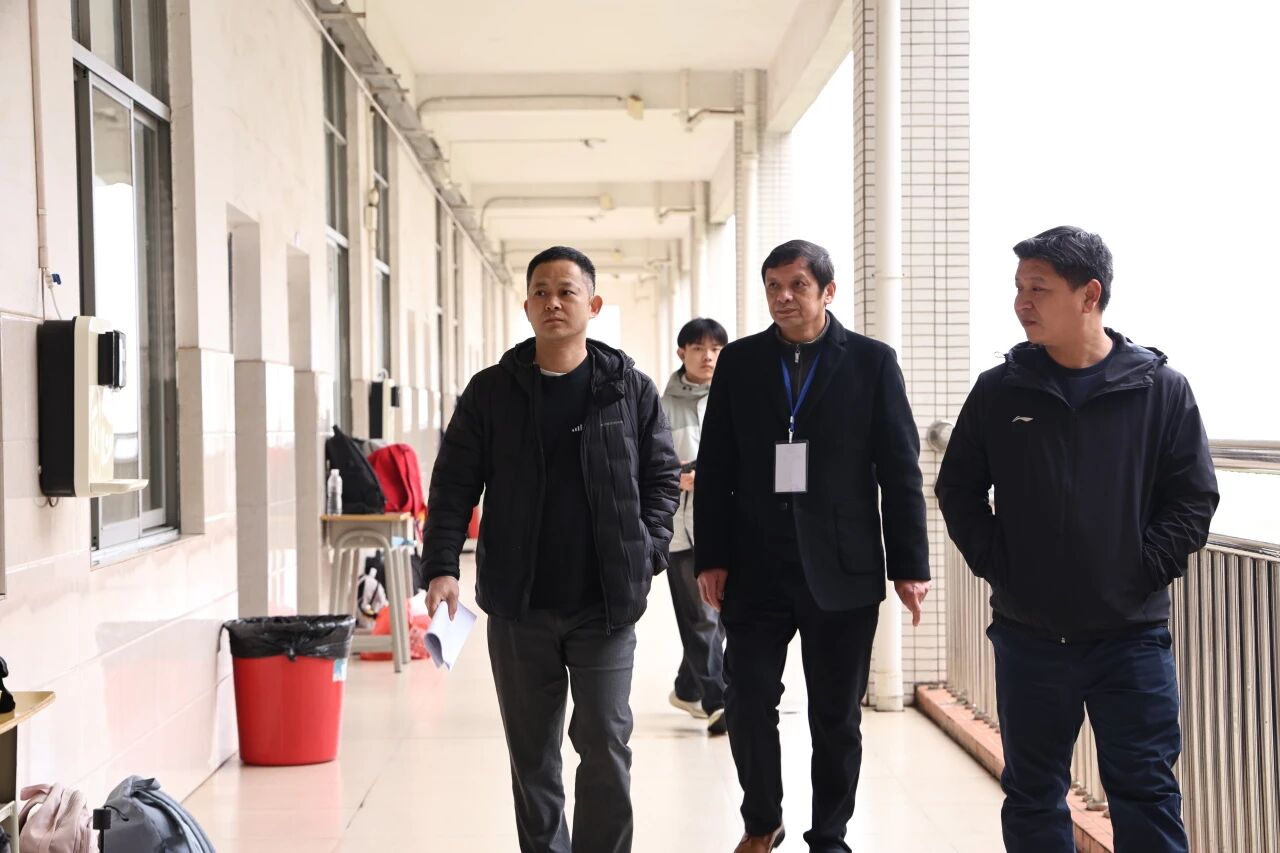 考试当天,校长刘权辉、副校长张春雷、关爱国、傅箭星等领导深入考场巡考,详细查看考场布置、考风考纪与服务保障情况,慰问一线考务工作人员与志愿者。