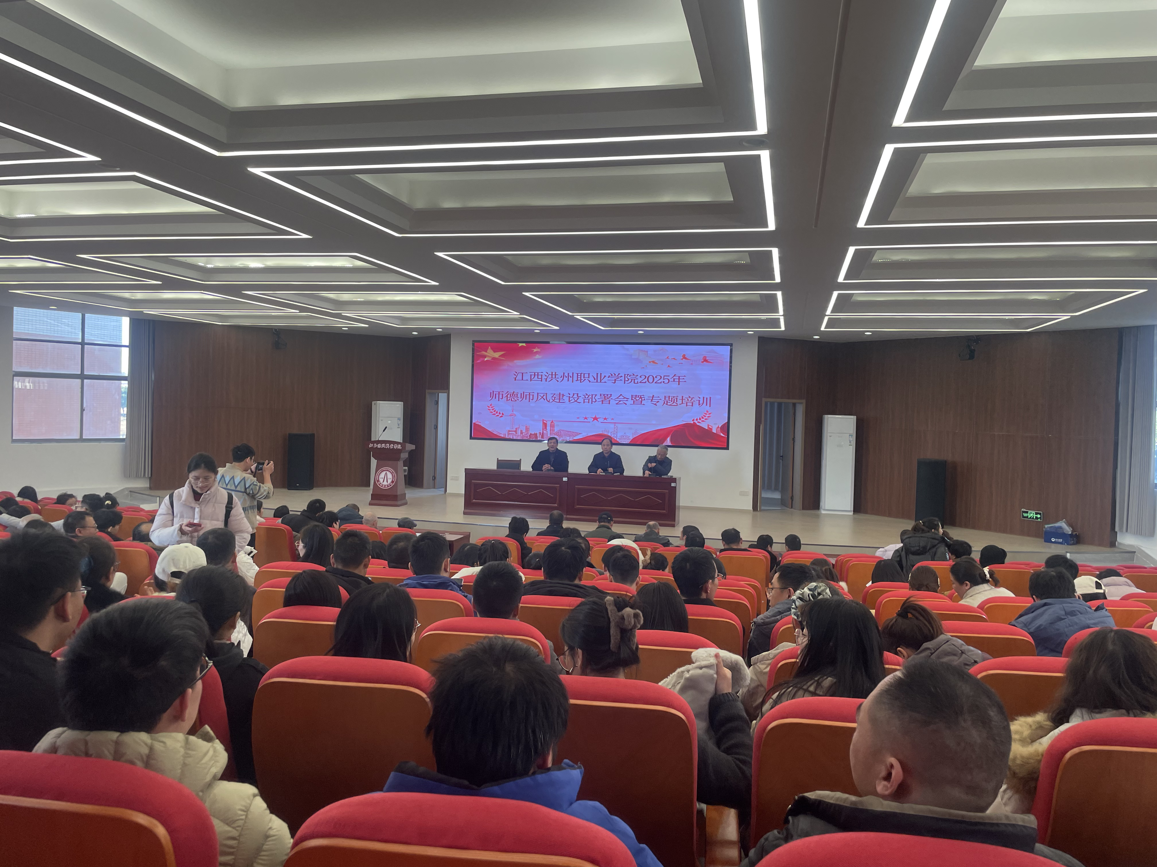 为深入贯彻落实新时代教师队伍建设改革要求,扎实推进学校师德师风建设工作,助力升本创建目标落地,2月26日,江西洪州职业学院隆重召开2025年师德师风建设部署会暨专题培训会议。学校领导班子成员、全体教职工参加了此次会议。