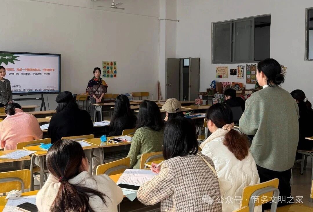 为深化课堂教学改革,促进教师专业成长,搭建教学交流平台,12月10日下午2点,我院王丽茹老师主讲的《幼儿园玩教具制作——纸元素玩教具创作》公开课在物华楼408教室圆满开展,各教研室教师及学生代表共同参与,课程以纸元素折纸玩教具创作为核心,践行理论实践一体化教学模式,有效实现技能传授与素养培育双提升。