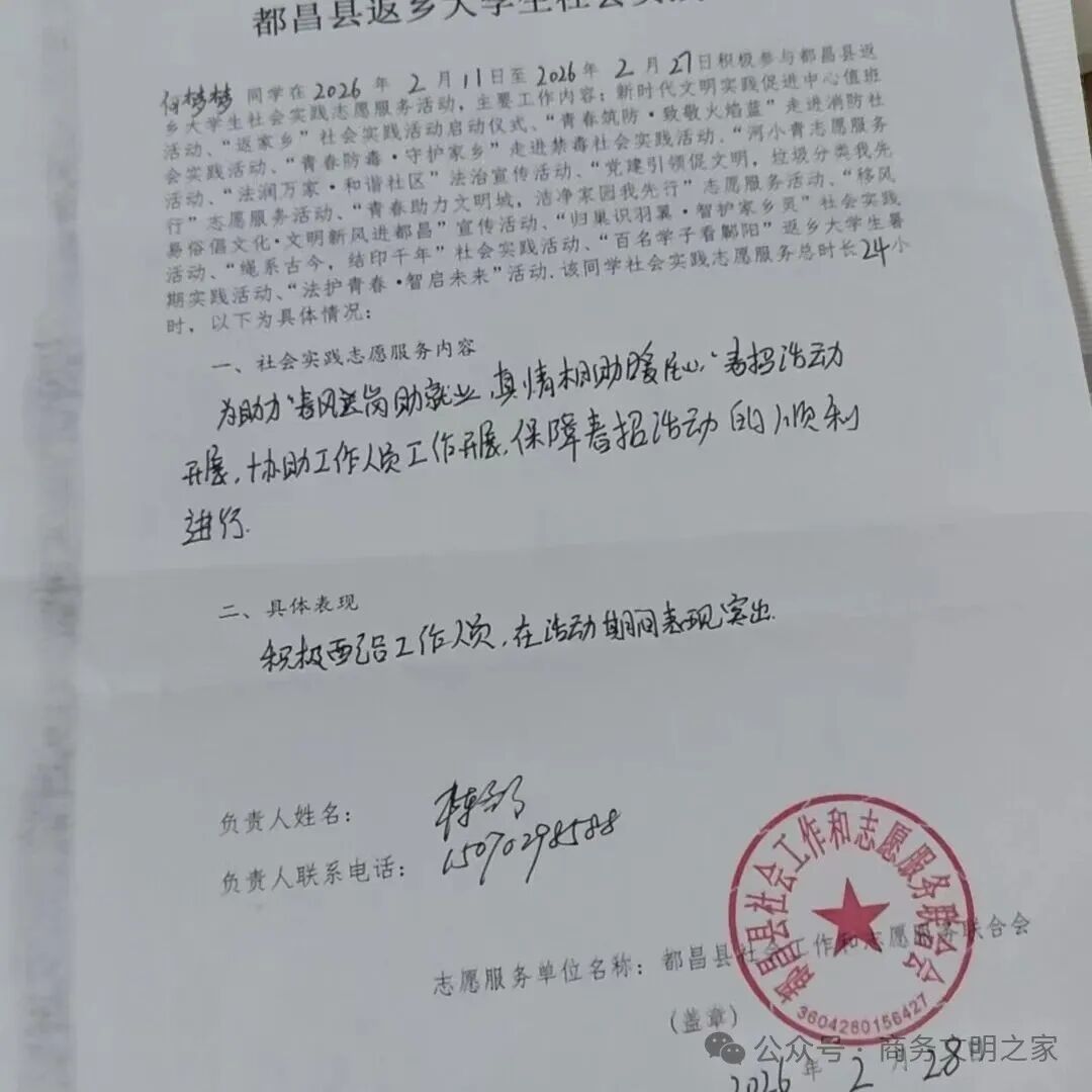 这段经历让我走出书本、走进生活,不仅锻炼了实践能力,更深刻体会到基层工作的辛苦与价值。我亲眼见证了家乡的发展与变化,也更加明白青年一代肩上的责任。