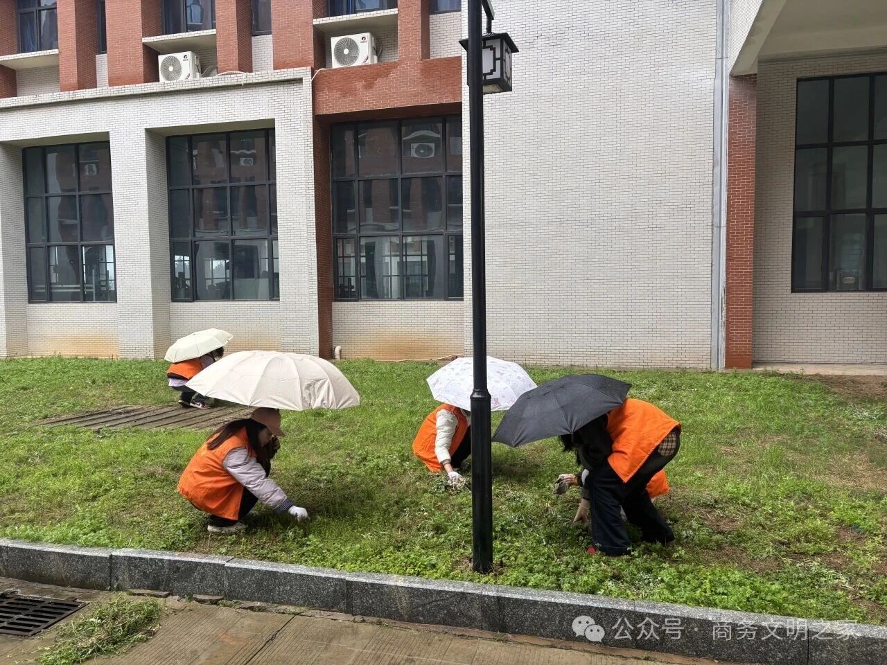 三月春风暖人心,雷锋精神永相传。商学院于2026年3月18日下午举行了校园除草护绿活动,参与此次活动的有商学院辅导员游佳丽以及入党积极分子,以实际行动学好雷锋精神,让绿色与文明在校园中绽放。