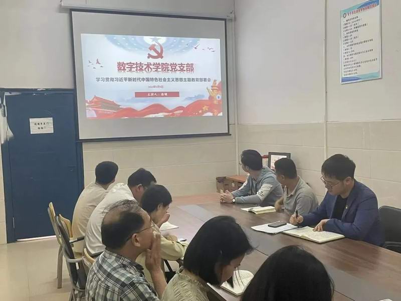 为了贯彻落实学校党委关于印发《在全校深入开展学习贯彻习近平新时代中国特色社会主义思想主题教育的实施方案》的文件精神,按照“学思想、强党性、重实践、建新功”的总要求,围绕学院中心工作,结合学院实际,数字技术学院于2023年5月5日下午,在党员活动室召开数字技术学院学习贯彻习近平新时代中国特色社会主义思想主题教育部署会。全体教职工、党员参会,会议由党支部书记徐明主持。