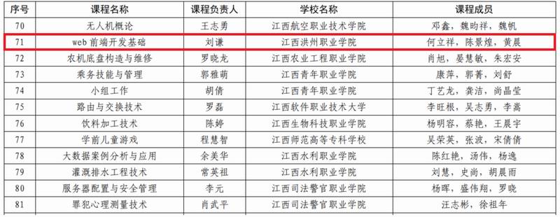 近日,我院传来喜讯,《Web前端开发基础》课程获得江西省职业教育一流核心课程(线下)认定,这一重要突破,标志着我院在高水平专业(群)建设进程中迈出了坚实的一步。