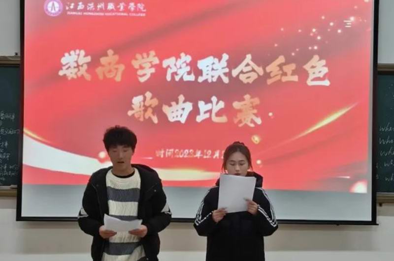 为进一步丰富校园文化生活,努力营造积极向上、健康文明的校园文化氛围,丰富我院学生的课余生活,加强校园精神文明建设。我院与商学院于2023年12月21日在1-201举行“青春飞扬,畅想未来”主题歌唱比赛。担任本次评委的老师为数字产业学院教师付默、黄明婷,商学院教师黄灿兰、万丐。