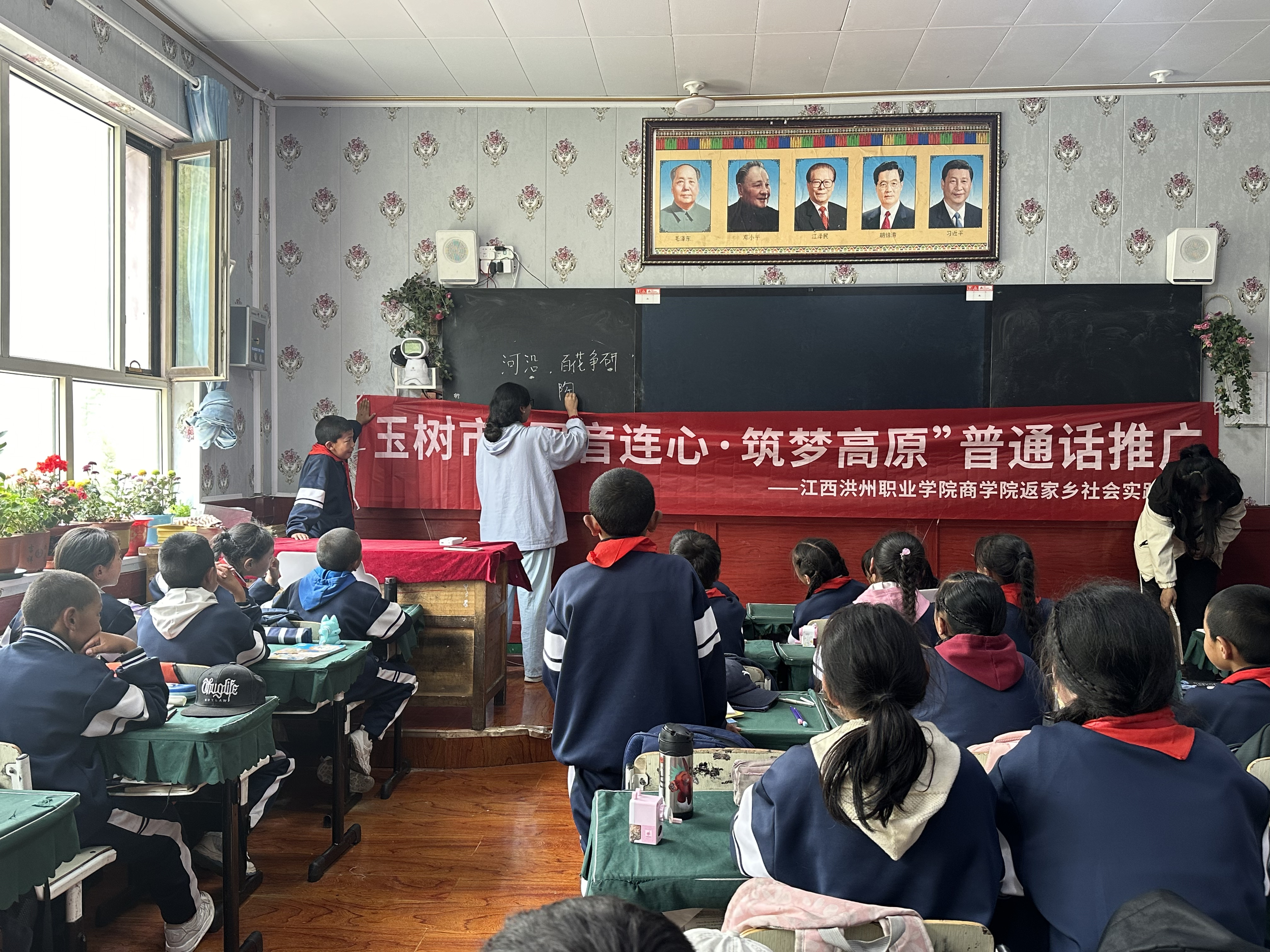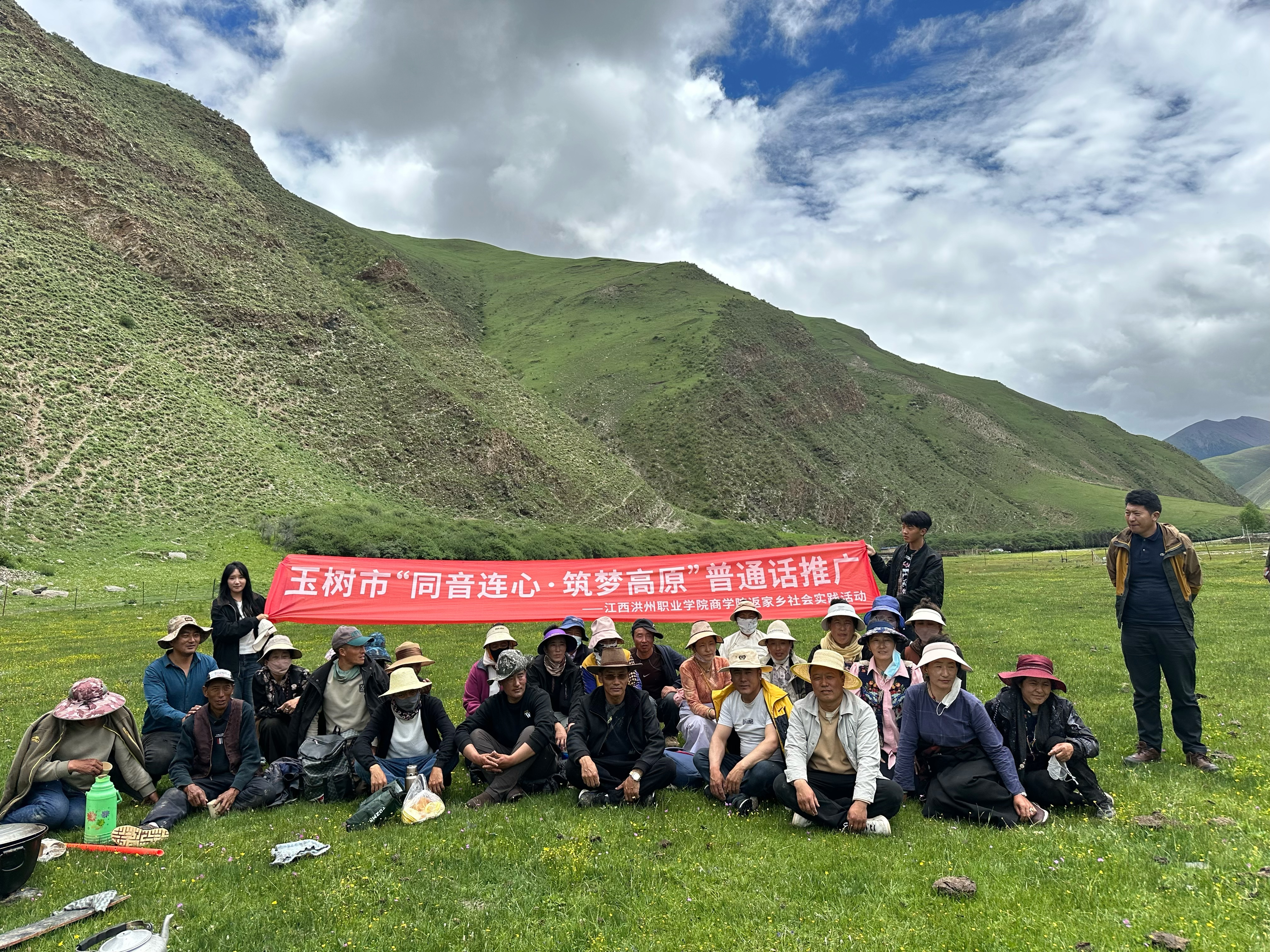2025年7月15日至20日,江西洪州职业学院商学院联合玉树籍返乡大学生组成"雅音薪传队",在玉树市称多县拉布乡开展普通话推广实践活动。玉树籍返乡大学生成员有尕松才仁、更松曲措、巴丁扎西、才巴、美拉松保、才仁卓玛、卡卓江才、伊西卡卓。通过牧区帐篷课堂、儿童普通话乐园等特色形式,服务牧民、儿童等群体200余人次,有效提升国家通用语言文字使用能力,助力民族团结与乡村振兴。