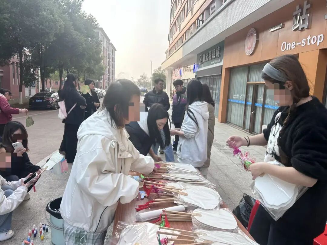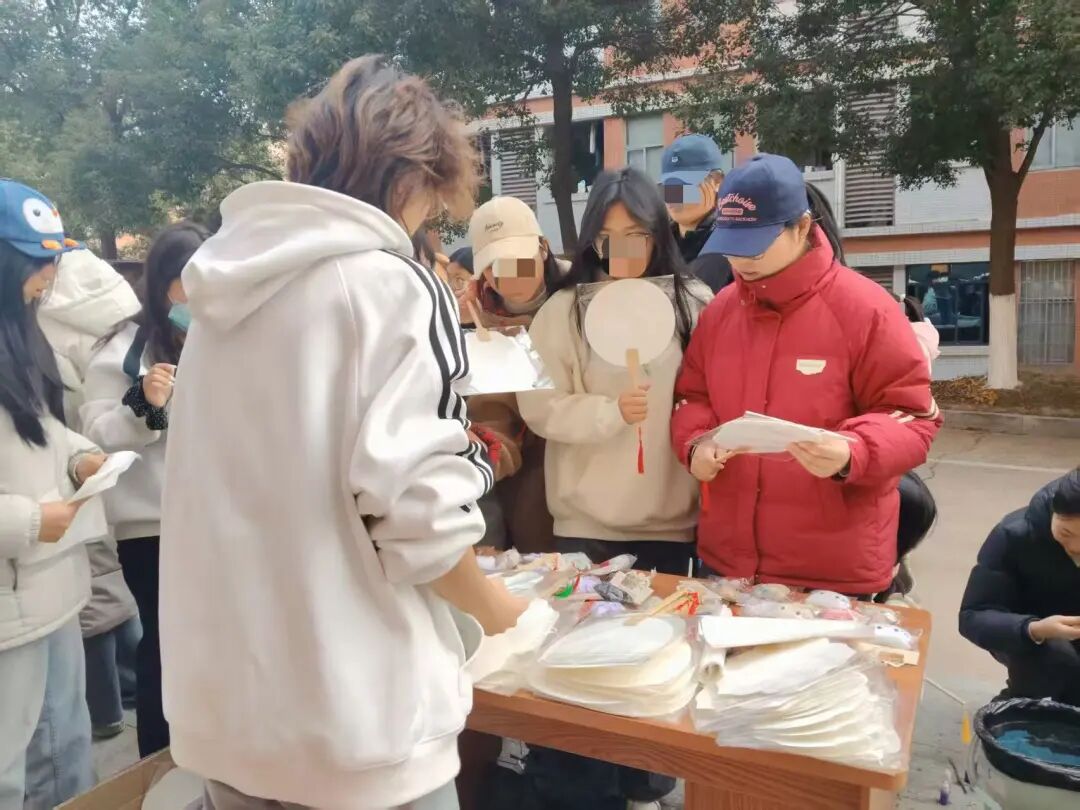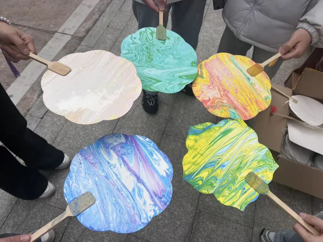 “原来不用会画画也能做出这么好看的扇子!”“涂颜色的时候完全忘记了考试压力,太放松了~”“看到成品的那一刻!感觉自己亲手把普通的扇子变得独一无二,特别有成就感。”活动过程中,同学们的欢声笑语不断,大家纷纷展示自己的作品,分享创作时的轻松心境。不少同学表示,这样的沉浸式创作让自己暂时脱离了学业和社交的压力,情绪得到了自然宣泄,收获了满满的快乐与平静。