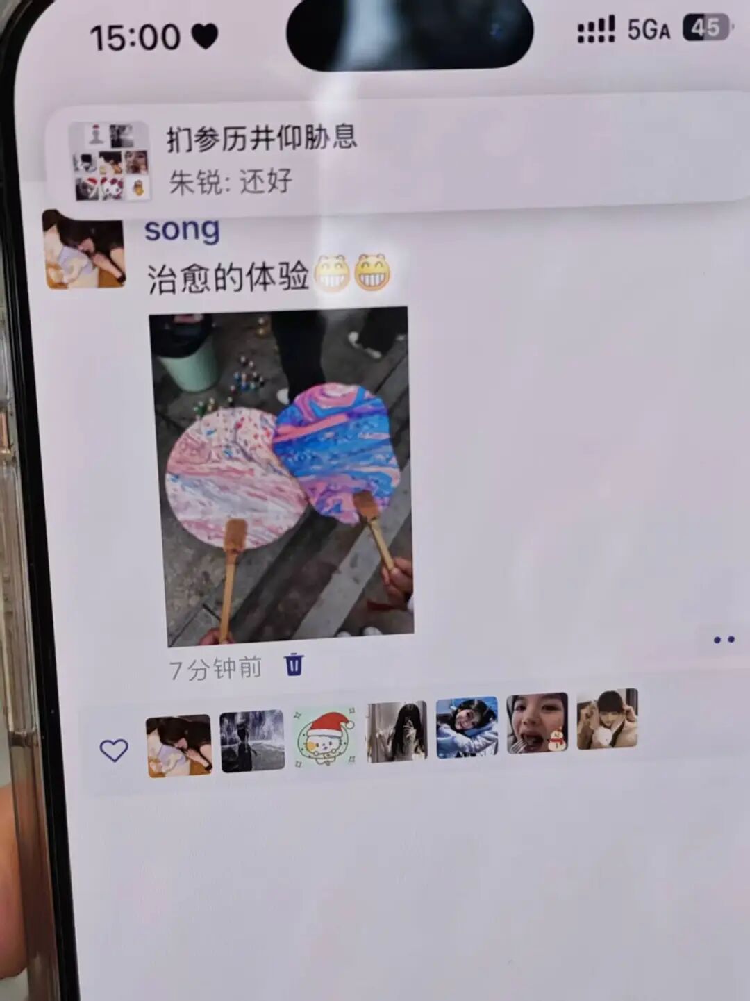 活动现场,同学们难掩创作的喜悦,纷纷主动将亲手制作的漆扇作品拍照分享至朋友圈,用文字记录创作时的轻松心境与收获的治愈感。一份创作,多重快乐,这份专属的美好通过社交分享不断传递,让更多人感受到漆扇DIY的温暖力量。