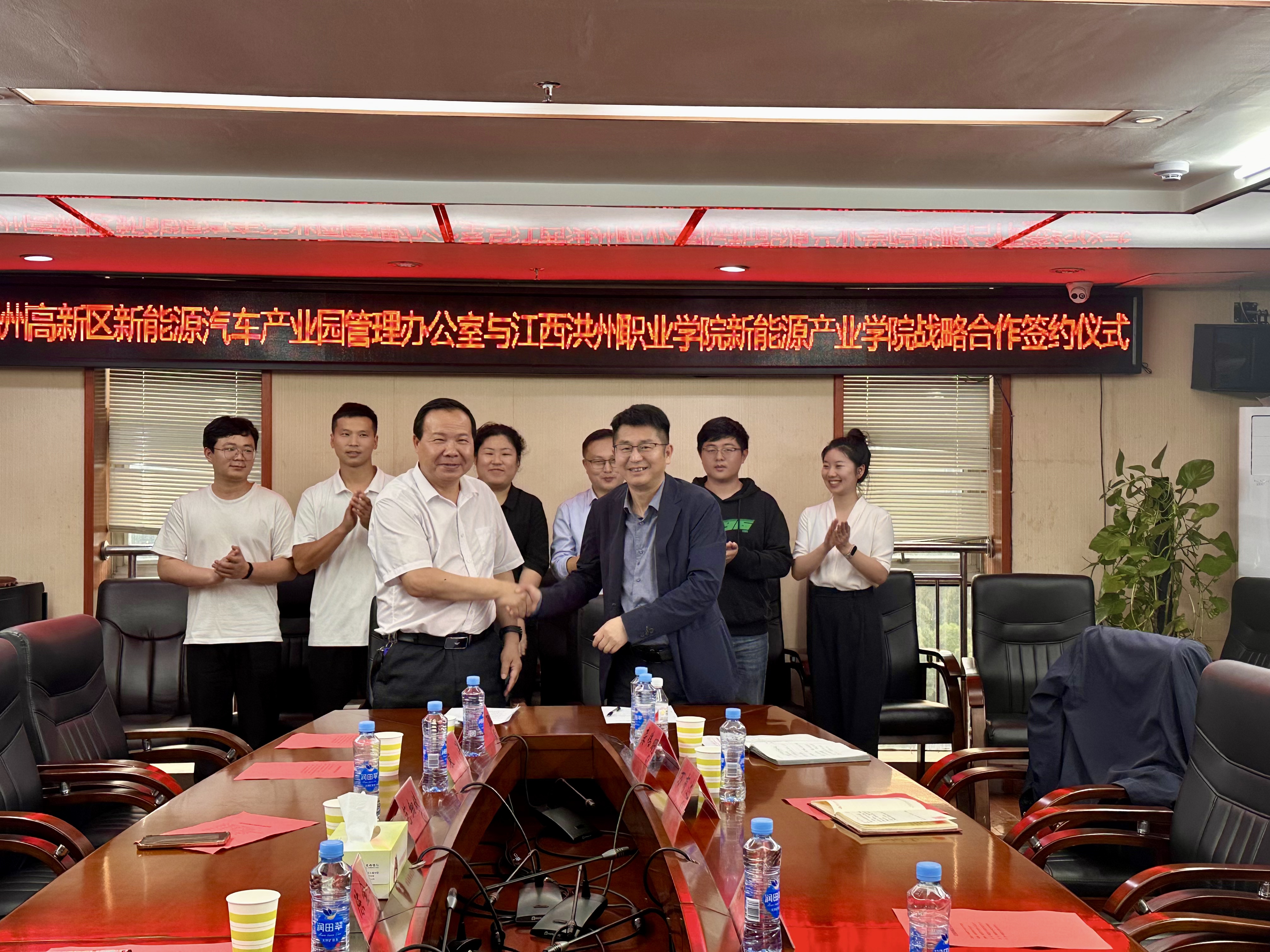 座谈会后,陈书记代表新能源产业学院,与抚州高新区新能源汽车产业园管理办公室签署为期5年的战略合作协议。协议明确,双方将在人才培养、实习就业、课程开发、科研转化等方面开展全方位合作,目标建成省级示范性实习实训基地,打造“实习-就业-创业”一体化服务平台。