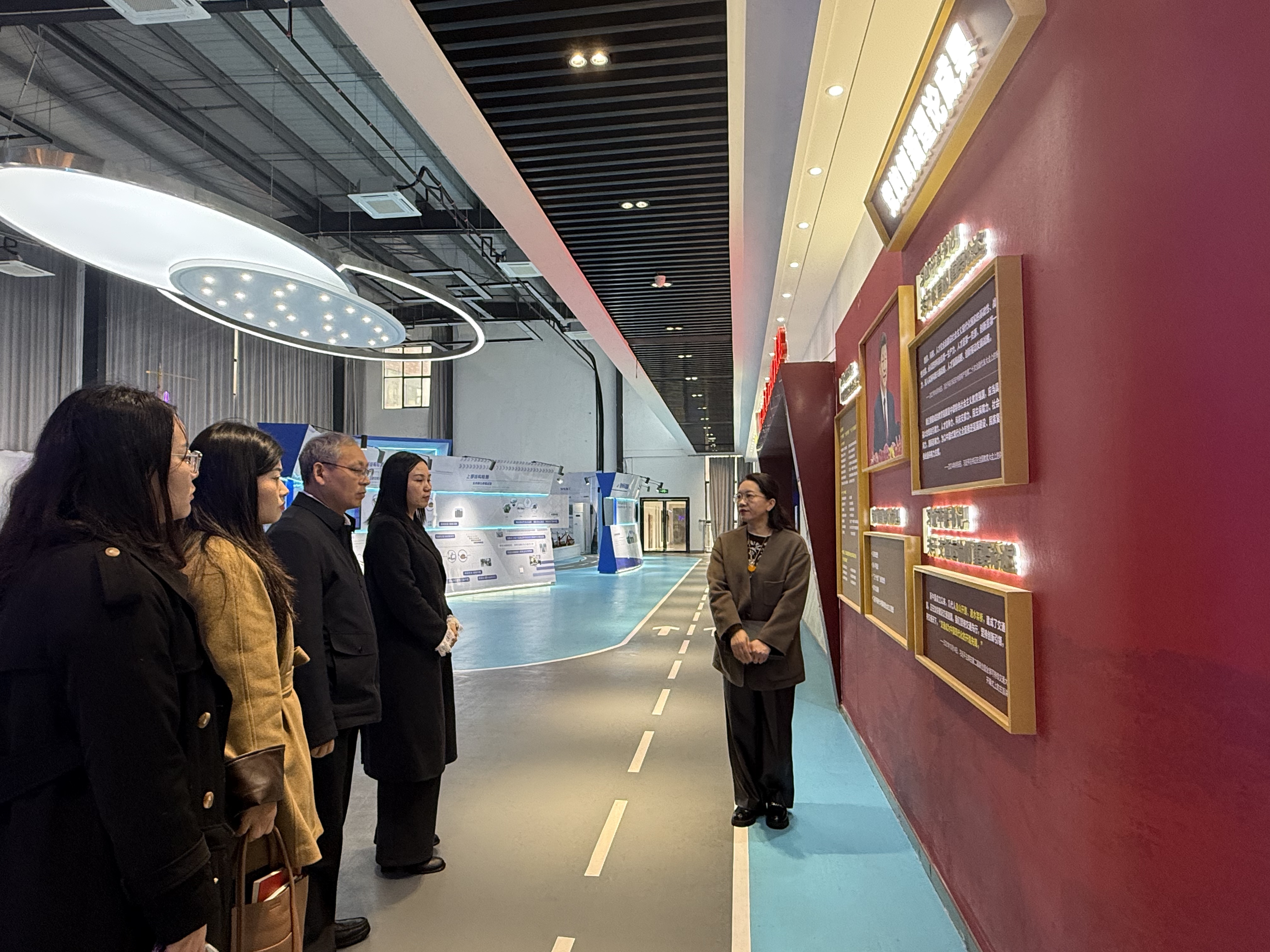 在江西交通职业技术学院,港航工程学院院长、路桥工程学院党总支书记李娟燕陪同熊书记一行实地参观了该校的党建成果。李娟燕书记详细介绍了支部标准化、规范化建设以及特色品牌打造、党员教育管理、活动开展形式等经验做法。