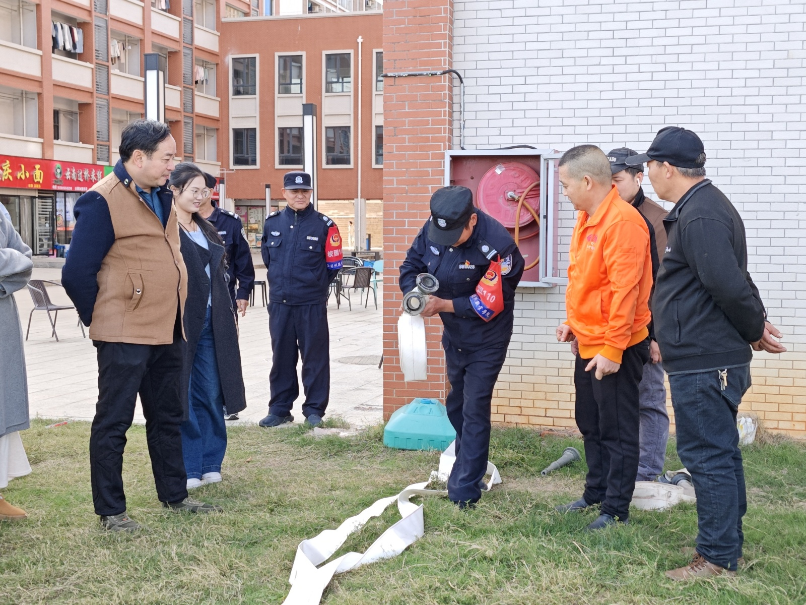 在消火栓实操区,保卫处人员现场演示了如何快速开启消防栓、连接水带、握持水枪等一系列动作。宿管、保安等人员分组进行了水带连接出水实操练习。通过亲身体验,大家熟悉了消防栓的使用流程和协作方法,为应对更大火情提供了宝贵经验。