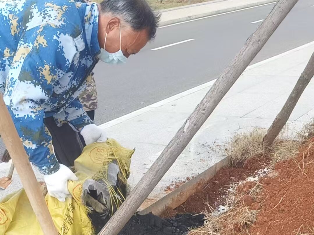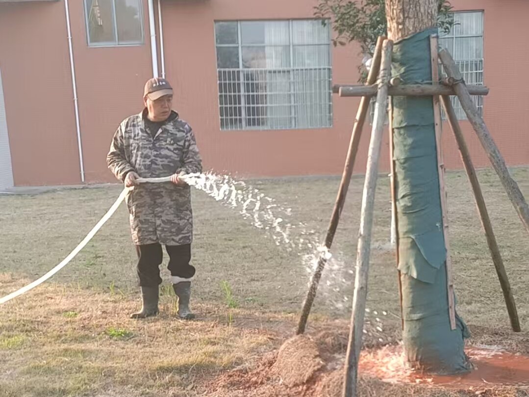 针对持续低温天气,本月重点对乔木和灌木进行了防寒加固措施:对未完成刷白的树木进行了补刷,增强抗冻防虫能力;同时对部分新栽植树木采取了根部覆土、包裹防寒布等保护措施。此外,配合施肥计划,对校园内绿化区域全面追施有机肥,为树木越冬及来年生长储备养分。