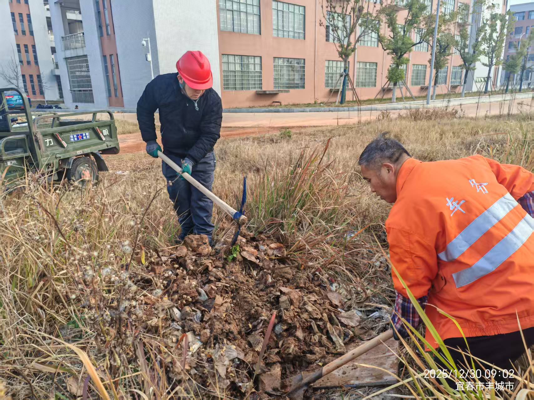 本月继续推进校园范围内的周期性打草任务。在月初集中人力完成了新一轮打草工作的主体部分,并对重点区域(如教学楼周边、主干道两侧草坪)进行了精细化修整,确保草坪整齐美观,同时避免冬季枯草堆积引发的安全隐患。