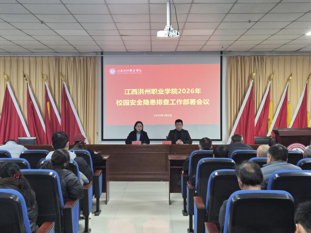 为深入贯彻2026年全省教育工作会议精神,落实学校中层干部2026年重点工作部署会要求,切实做好校园安全隐患排查整治工作,筑牢校园安全防护网,2026年3月6日,后勤保障处组织召开2026年校园安全隐患排查工作部署会议,专题传达学习上级及学校会议精神,部署全年校园安全隐患排查重点工作,要求各科室严格执行2026年校园安全工作计划,以常态化、精细化排查整治推动校园安全工作走深走实。学校副校长金红艳、后勤保障处处长雷林及后勤保障处全体成员参加会议。