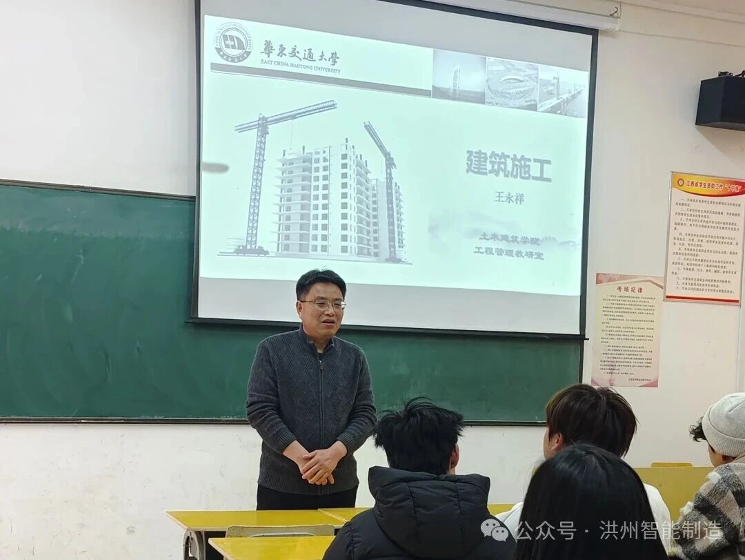 智能制造产业学院于2026年1月8日邀请华东交通大学土木建筑学院王永祥教授,以“建筑工程标准层施工原理”为核心主题,开展了一场兼具理论深度与实践导向的高阶专题讲座。