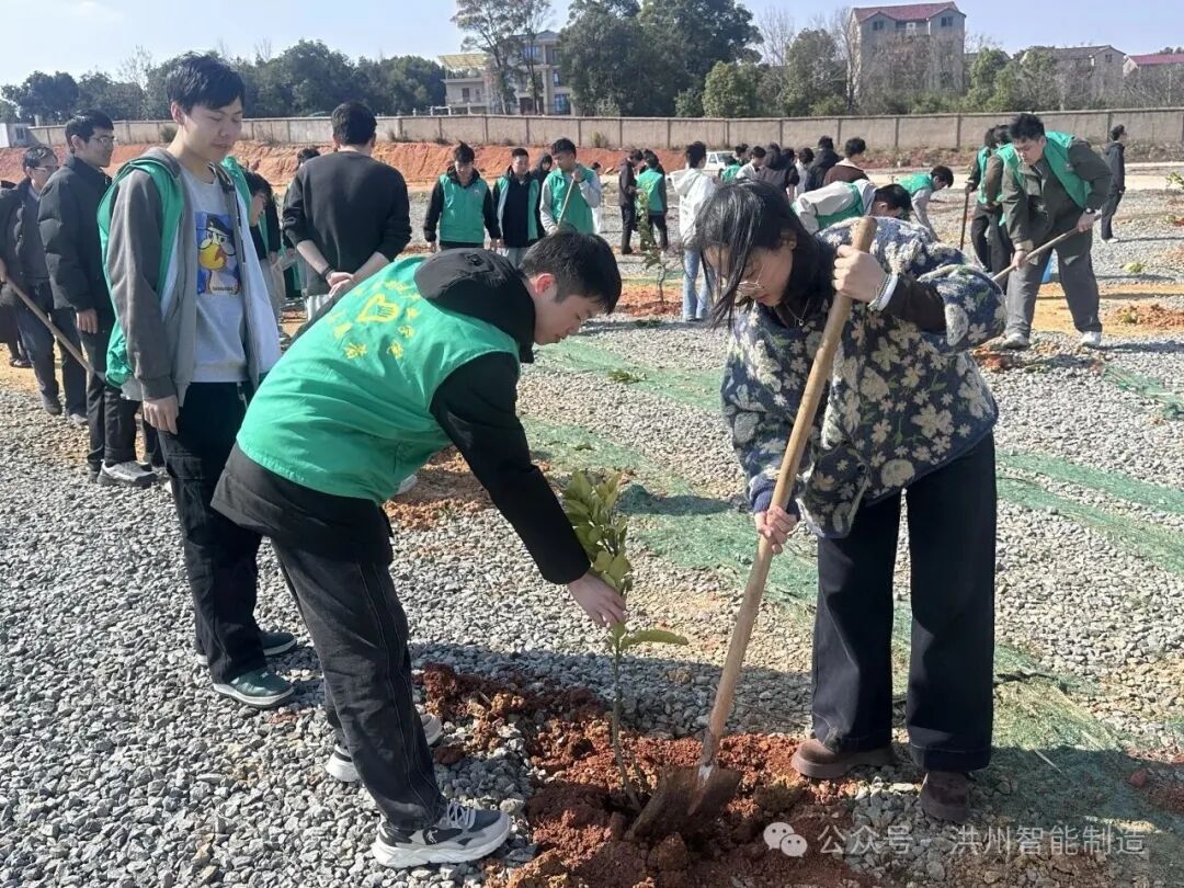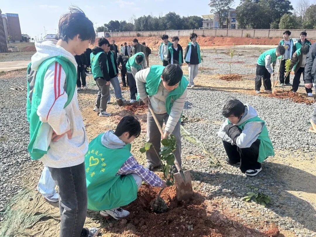 每一片新绿,都让地球更年轻;种植一抹新绿,让世界少一些碳息。春风拂新绿,植树正当时。为深入践行习近平生态文明思想与绿色发展理念,充分发挥党建带团建的引领作用,进一步凝聚师生绿色环保共识,3月12日下午2时30分,智能制造产业学院组织开展植树节主题实践活动。本次活动由学院党员教师、共青团员及学生代表共同参与,在校园北侧规划绿地以实际行动为校园增绿添彩,为生态文明建设赋能助力。